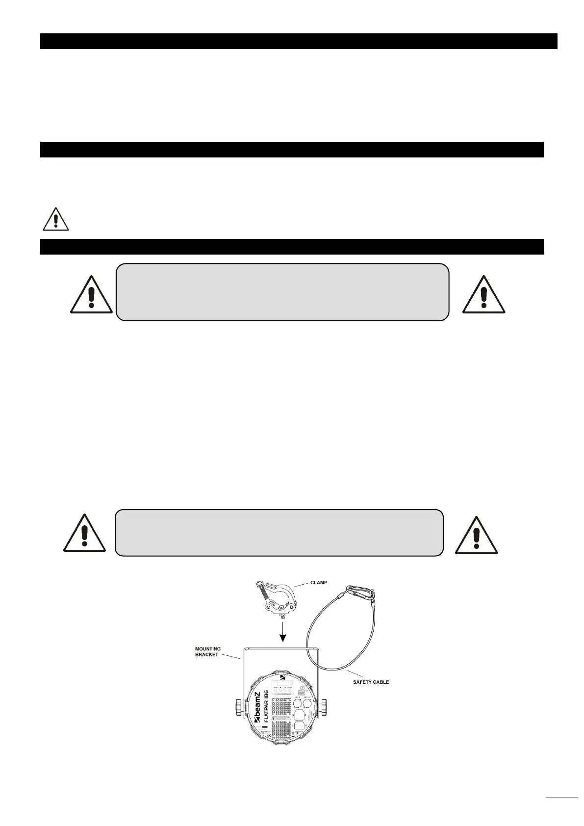 • Die Aufhängung des Geräts muss 10-mal das Eigengewicht 1 Stunde lang ohne Spuren von Verformung tragen