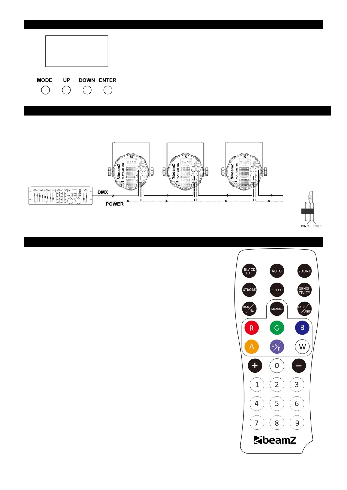 alle Geräte angeschlossen sind. Sollen DMX-Controller mit 5-polige XLR-Ausgängen angeschlossen werden, müssen 5-polige