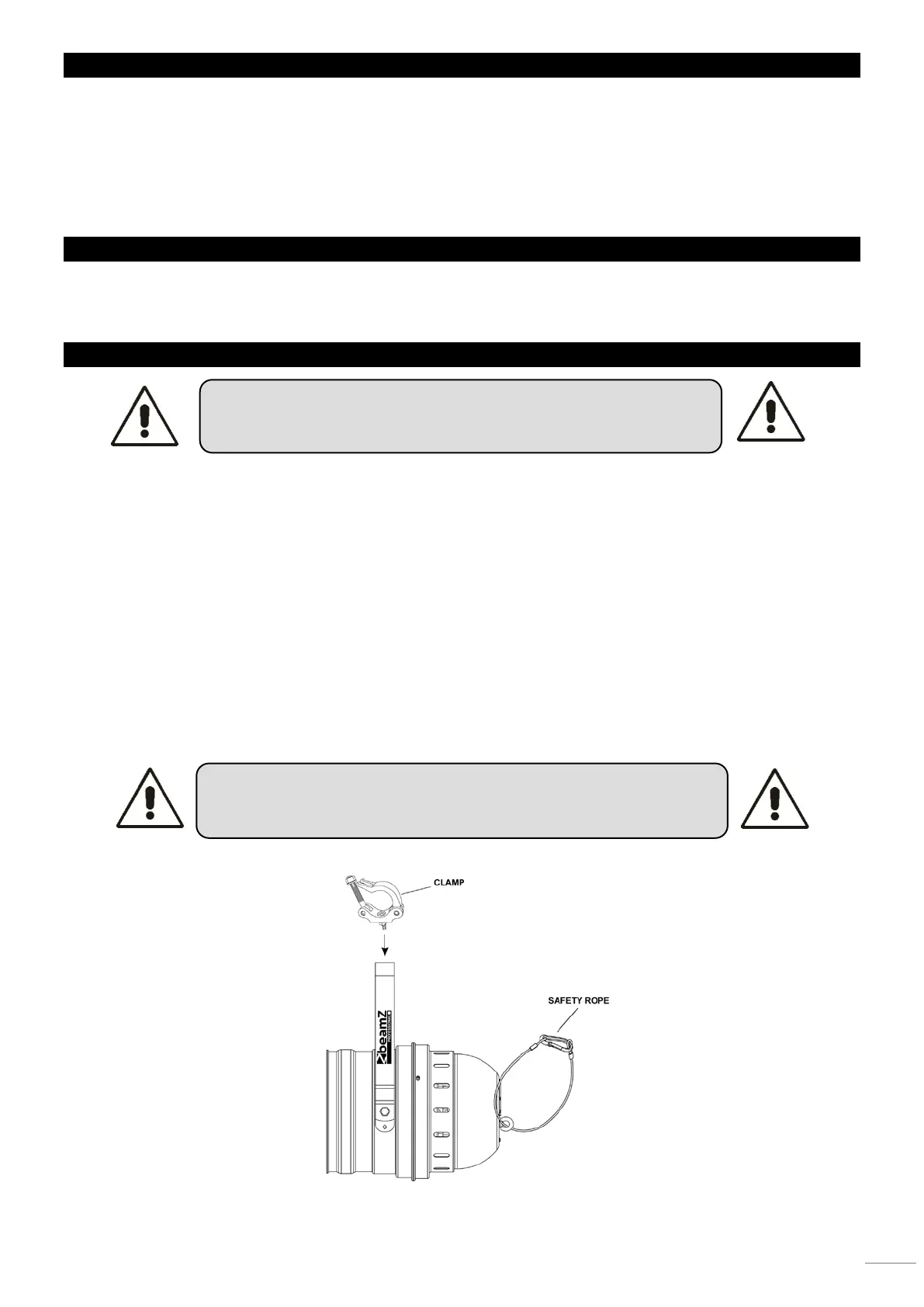 • The installation must always be secured with a secondary safety attachment, e.g. an appropriate catch net.