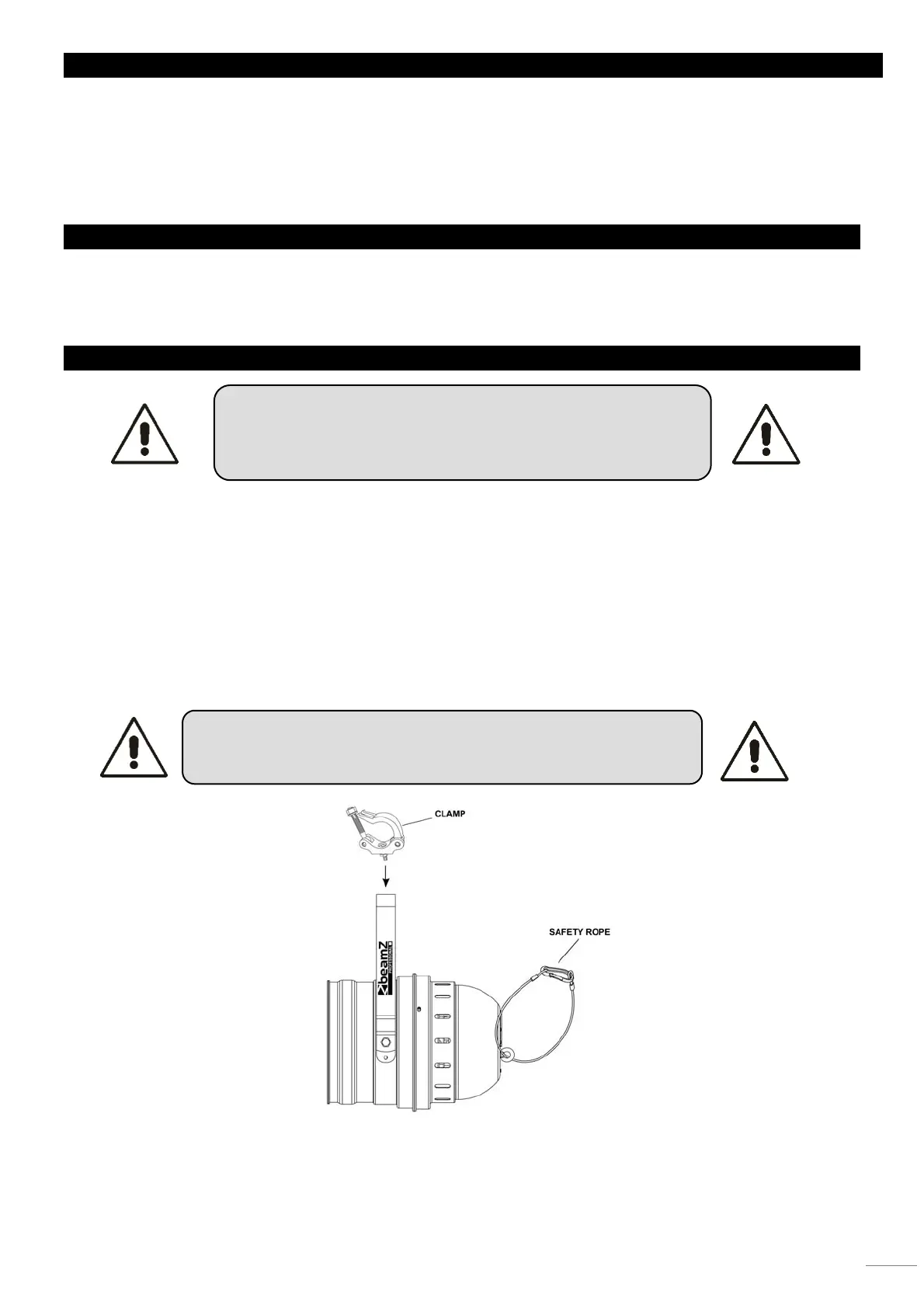 • Die Aufhängung des Geräts muss 10-mal das Eigengewicht 1 Stunde lang ohne Spuren von Verformung tragen