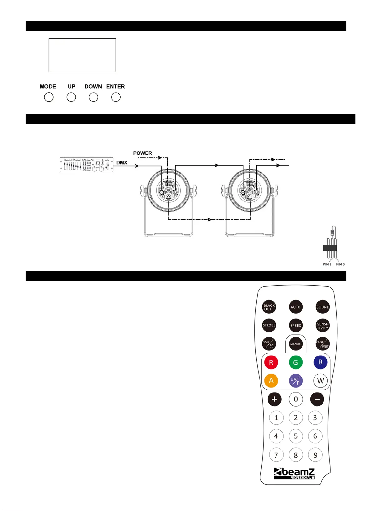 des ersten Gerätes der DMX-Kette verbinden. Verbinden Sie immer einen Ausgang mit dem Eingang des nächsten Gerätes bis