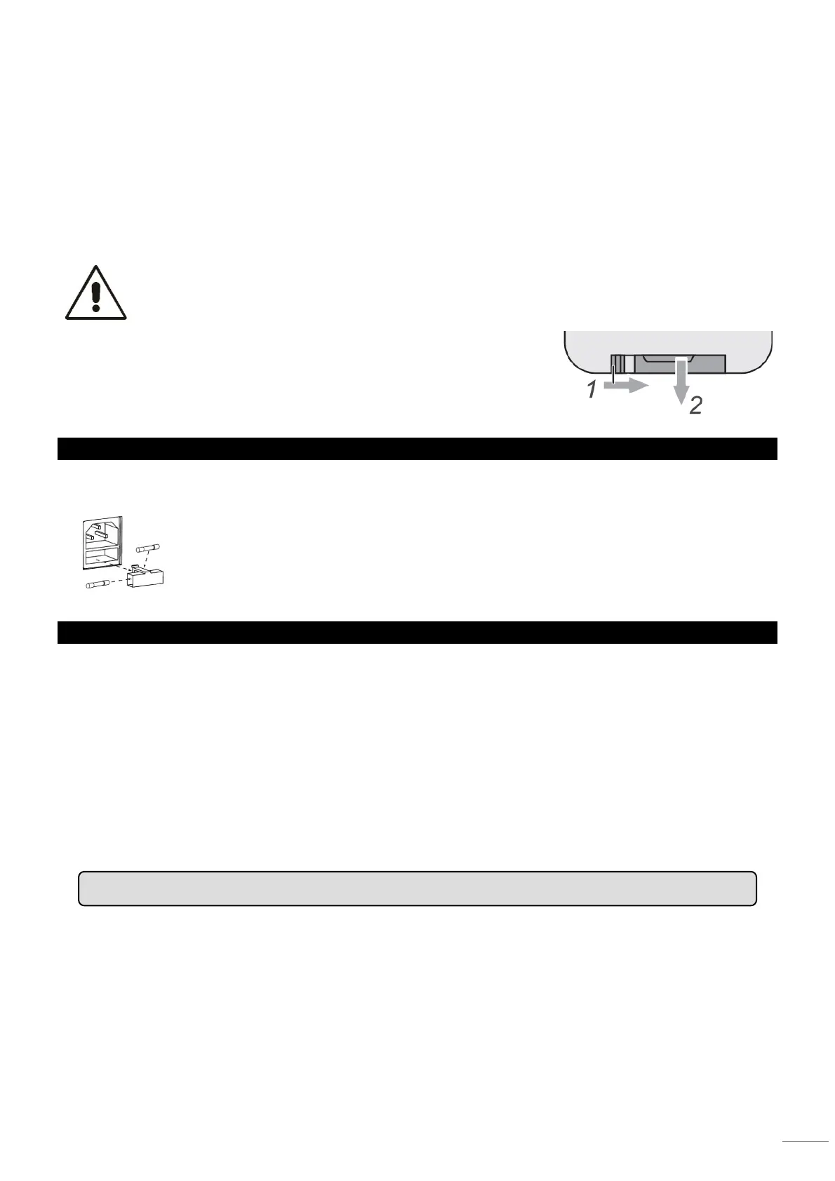If the fuse is defective, replace the fuse with a fuse of the same type and value. Before replacing the fuse, unplug mains lead.