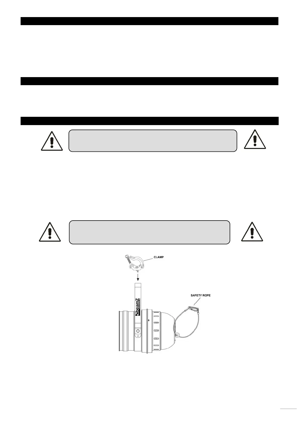 Het lichteffect moet altijd worden gezekerd met een tweede beveiliging zoals een vangnet of veiligheidsketting. De