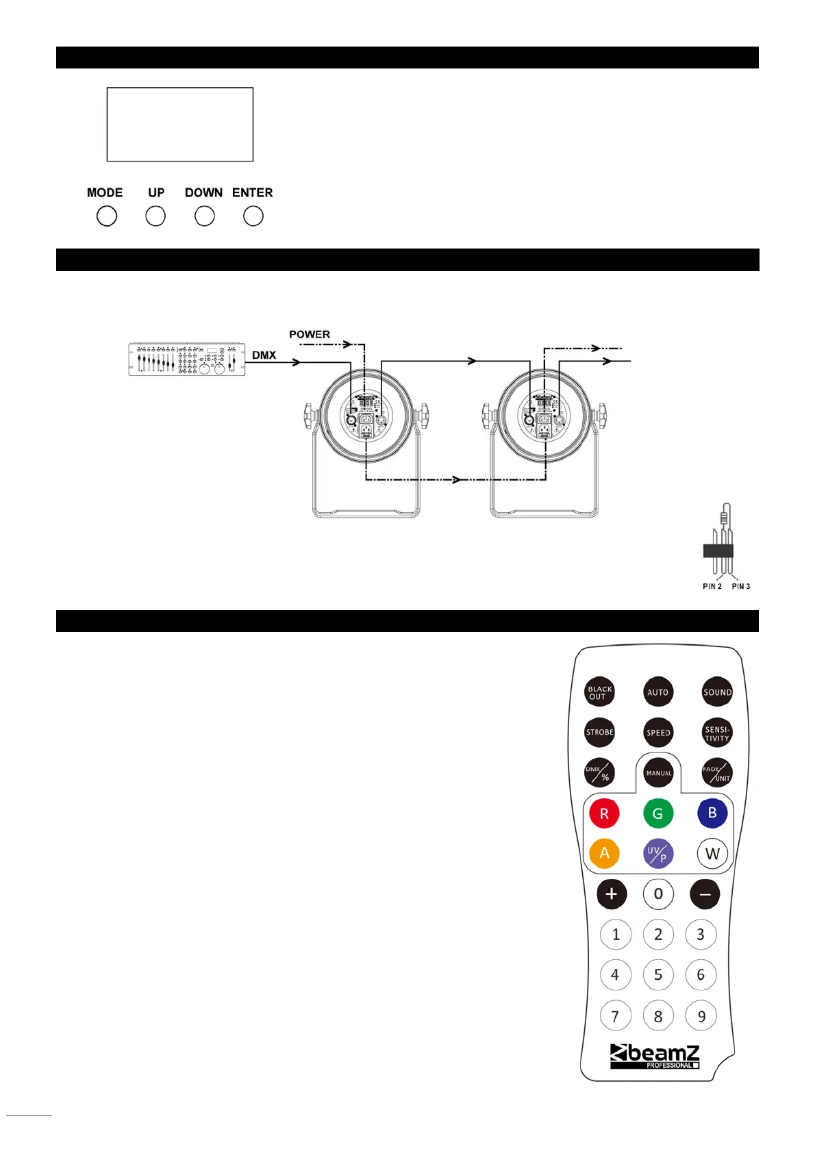 de DMX ingang van het eerste DMX apparaat. Sluit altijd de DMX uitgang aan op de eerst volgende DMX ingang van het
