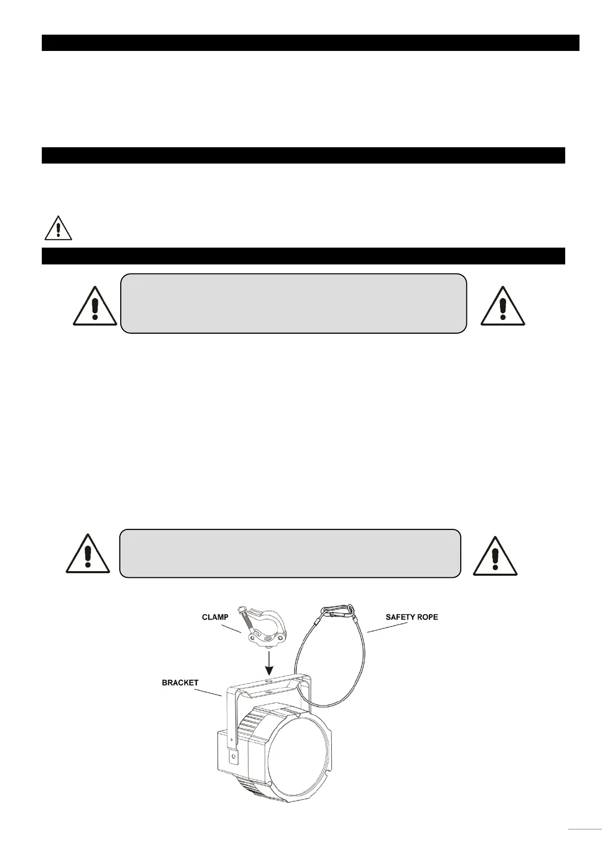 • Die Aufhängung des Geräts muss 10-mal das Eigengewicht 1 Stunde lang ohne Spuren von Verformung tragen