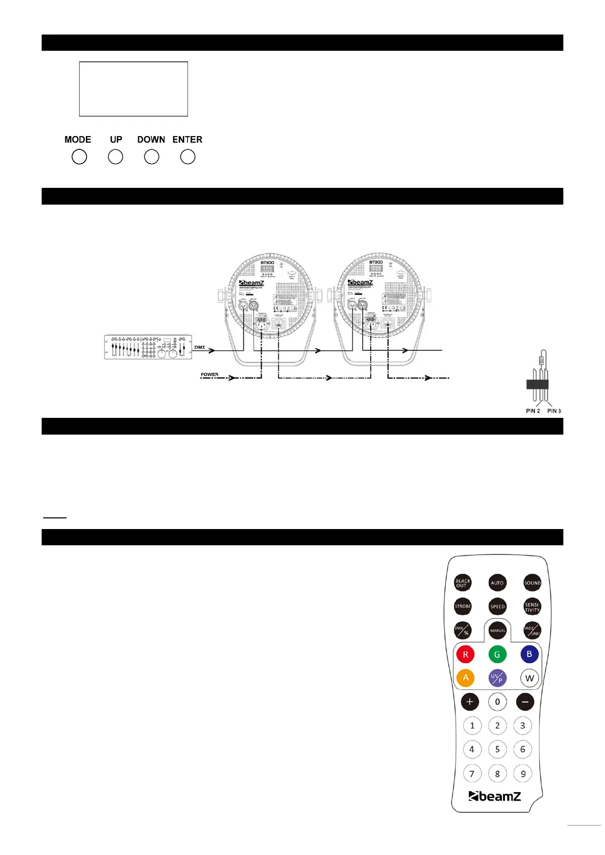 que se conectan todas las unidades. Si utiliza un controlador con conexión DMX 5 pins, deberá utilizar un adaptador de 5 pines
