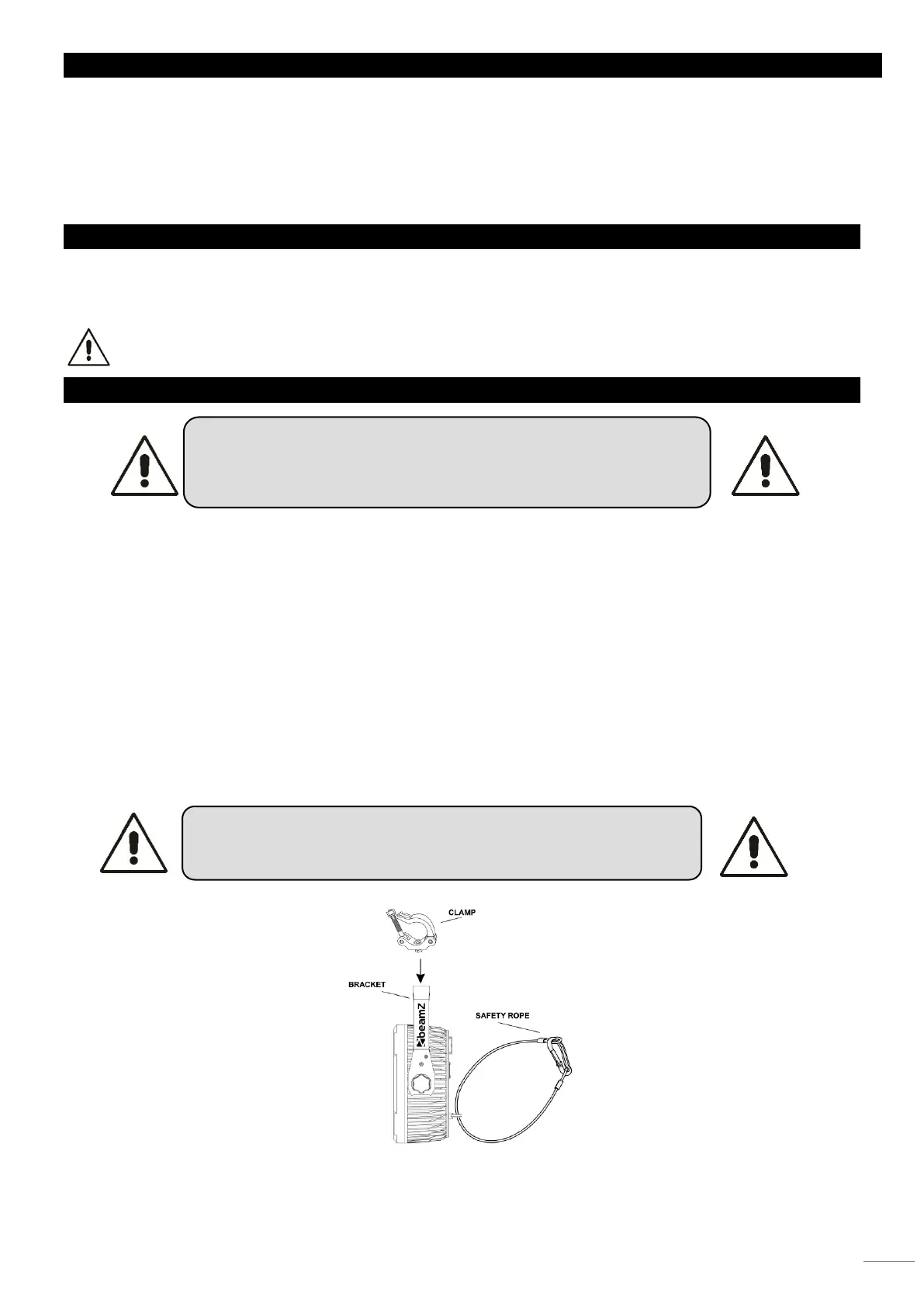 • Die Aufhängung des Geräts muss 10-mal das Eigengewicht 1 Stunde lang ohne Spuren von Verformung tragen