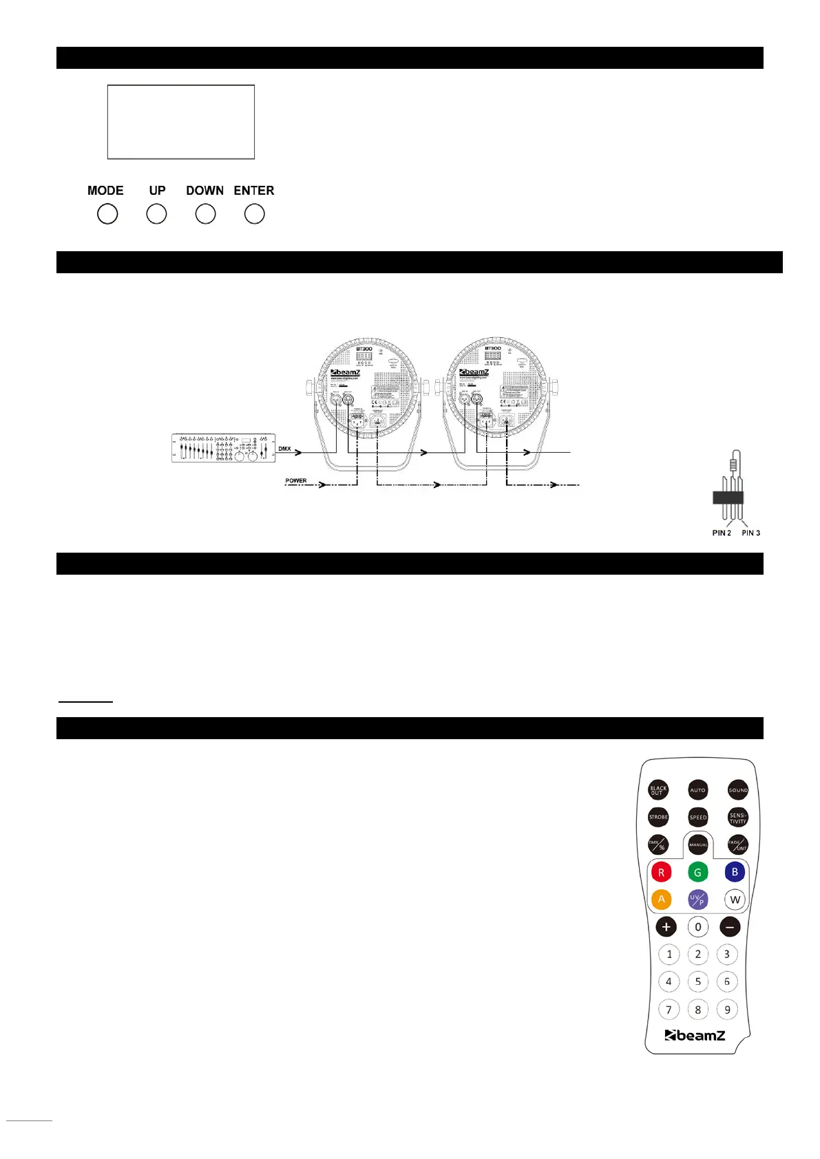 Schließen Sie das erste Gerät "DMX OUT" Busche mit dem zweiten Gerät "DMX IN", durch Verwendung eines 3-Pin DMX
