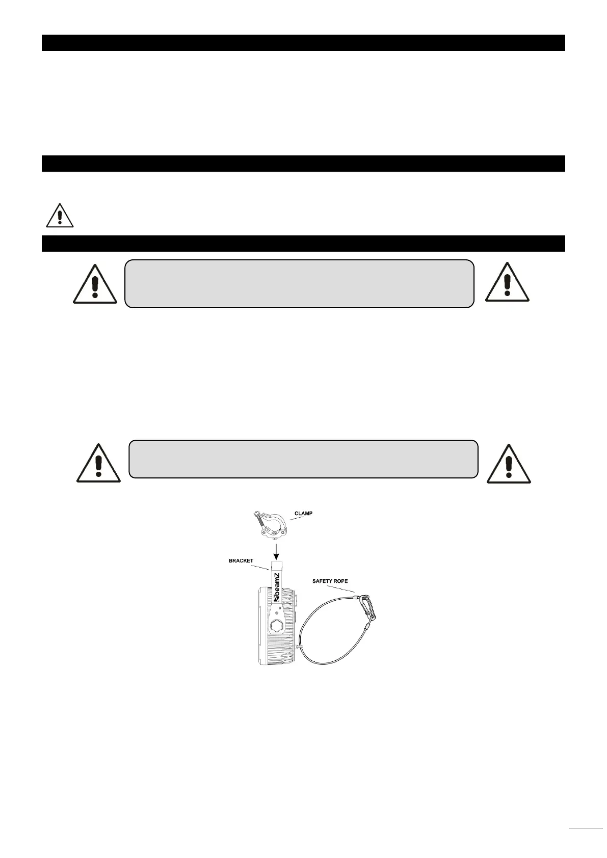 • Instalacja musi być zawsze dodatkowo zabezpieczona, np. linką bezpieczeństwa. Dodatkowe zabezpieczenie musi