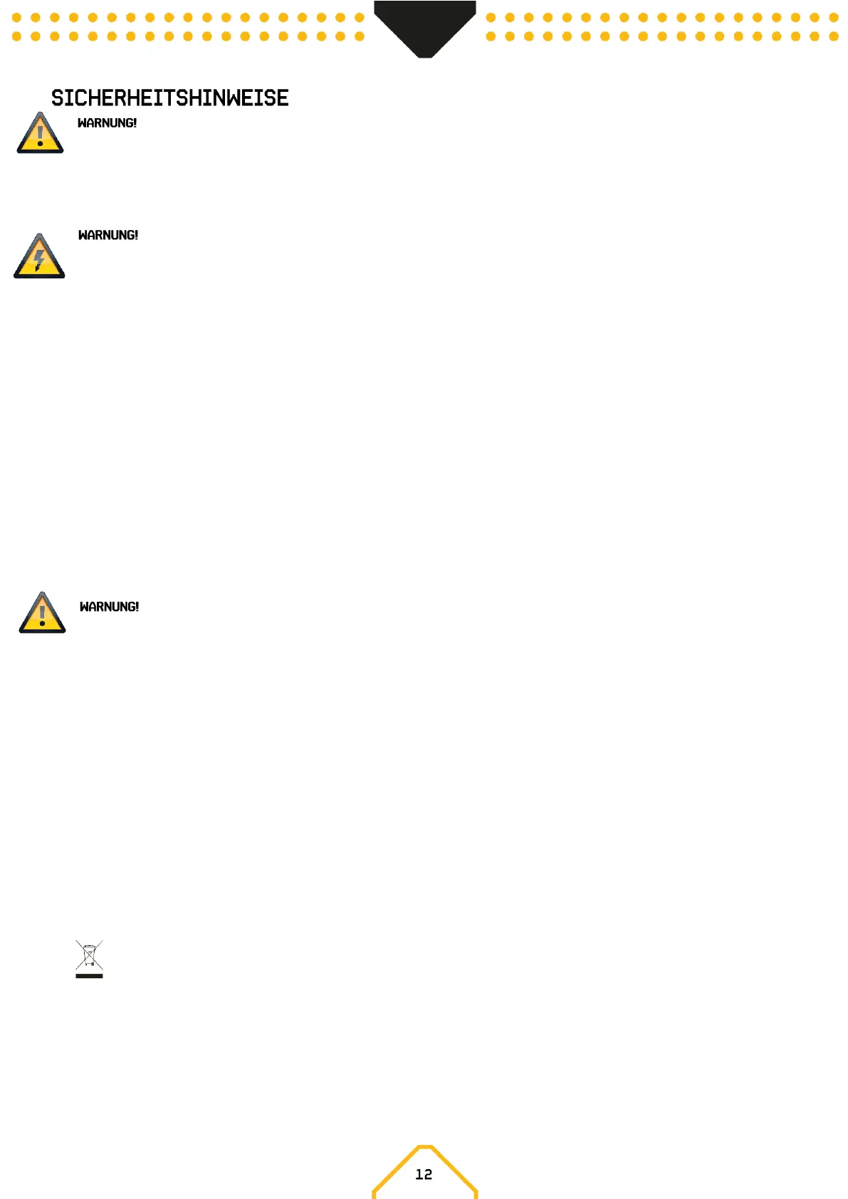 • Beachten Sie alle Sicherheitshinweise. Entfernen Sie niemals Sicherheitshinweise oder andere Informationen vom Gerät.
