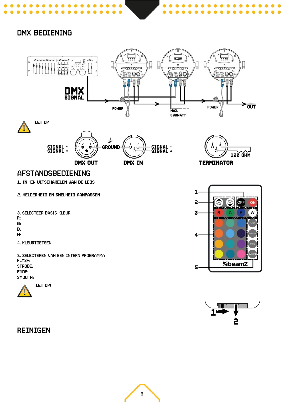 ! Bij het laatste apparaat, dient u de DMX-lijn af te sluiten met een eindweerstand. Neem een XLR connector en soldeer een 120 Ohm
