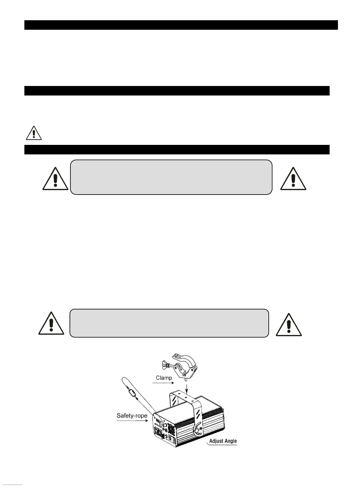 • Die Aufhängung des Geräts muss 10-mal das Eigengewicht 1 Stunde lang ohne Spuren von Verformung tragen