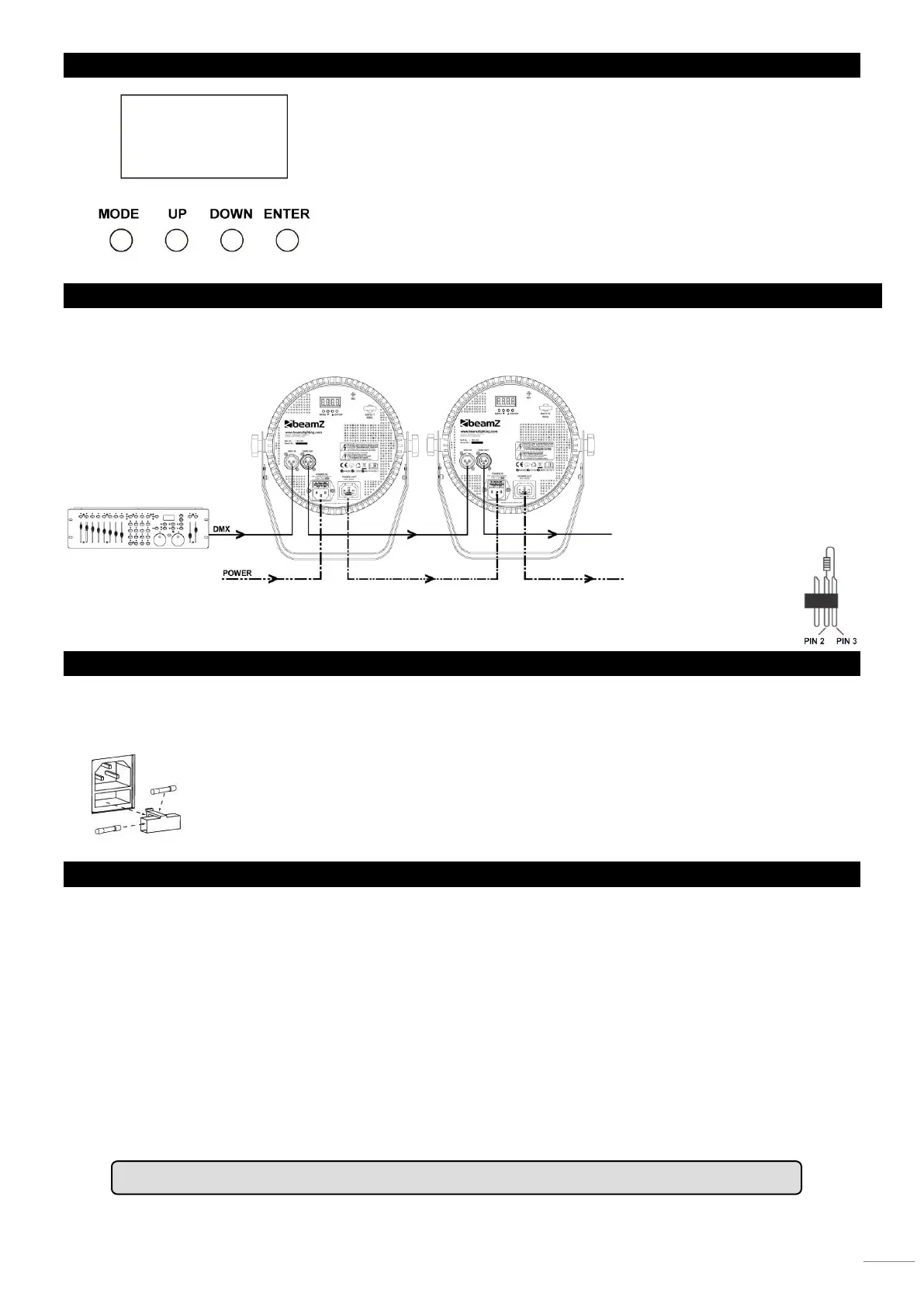 Achtung, Am letzten Gerät muss das DMX-Kabel durch einen Abschlusswiderstand abgeschlossen werden. Dazu
