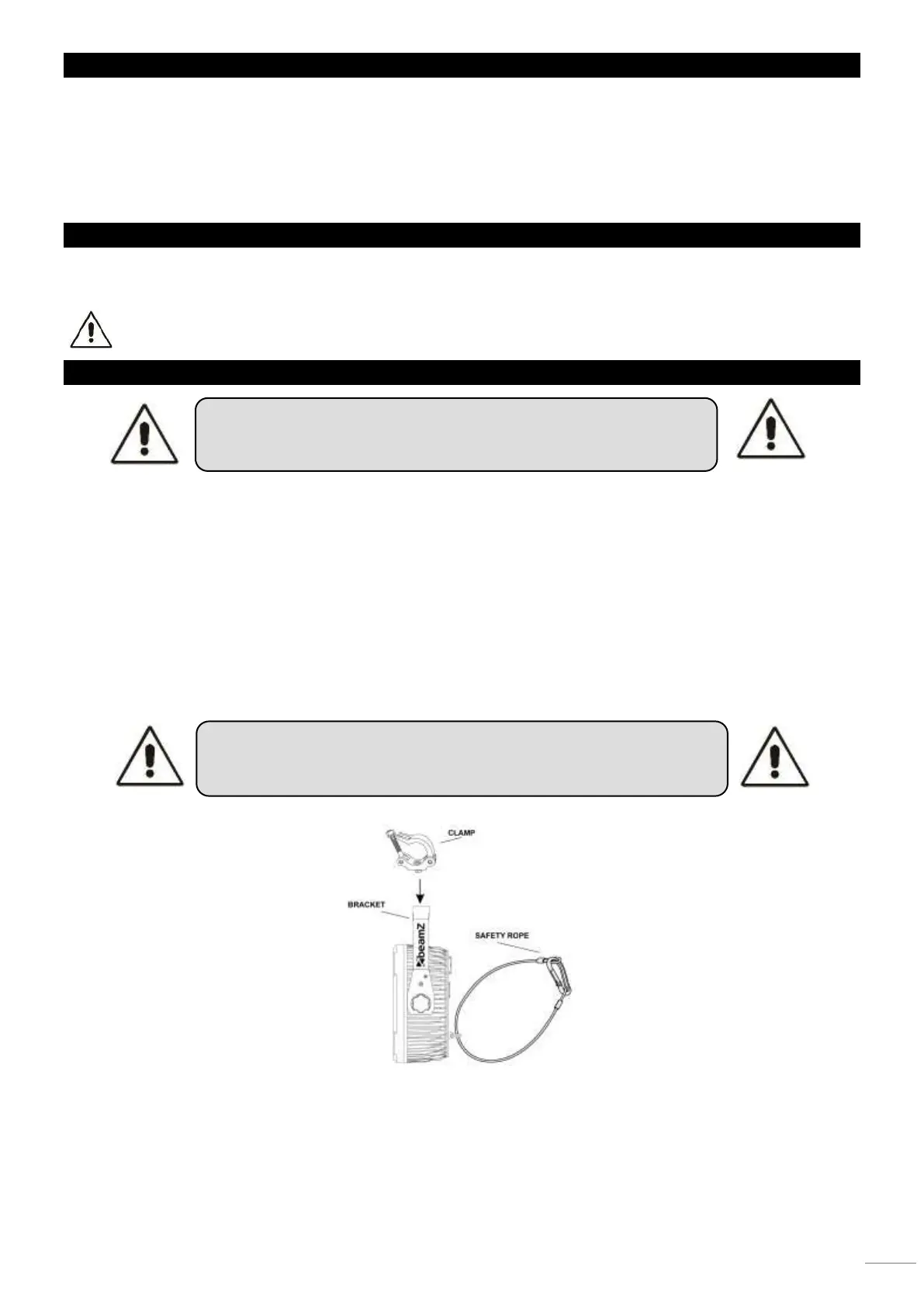 The installation must always be secured with a secondary safety attachment, e.g. an appropriate catch net. This