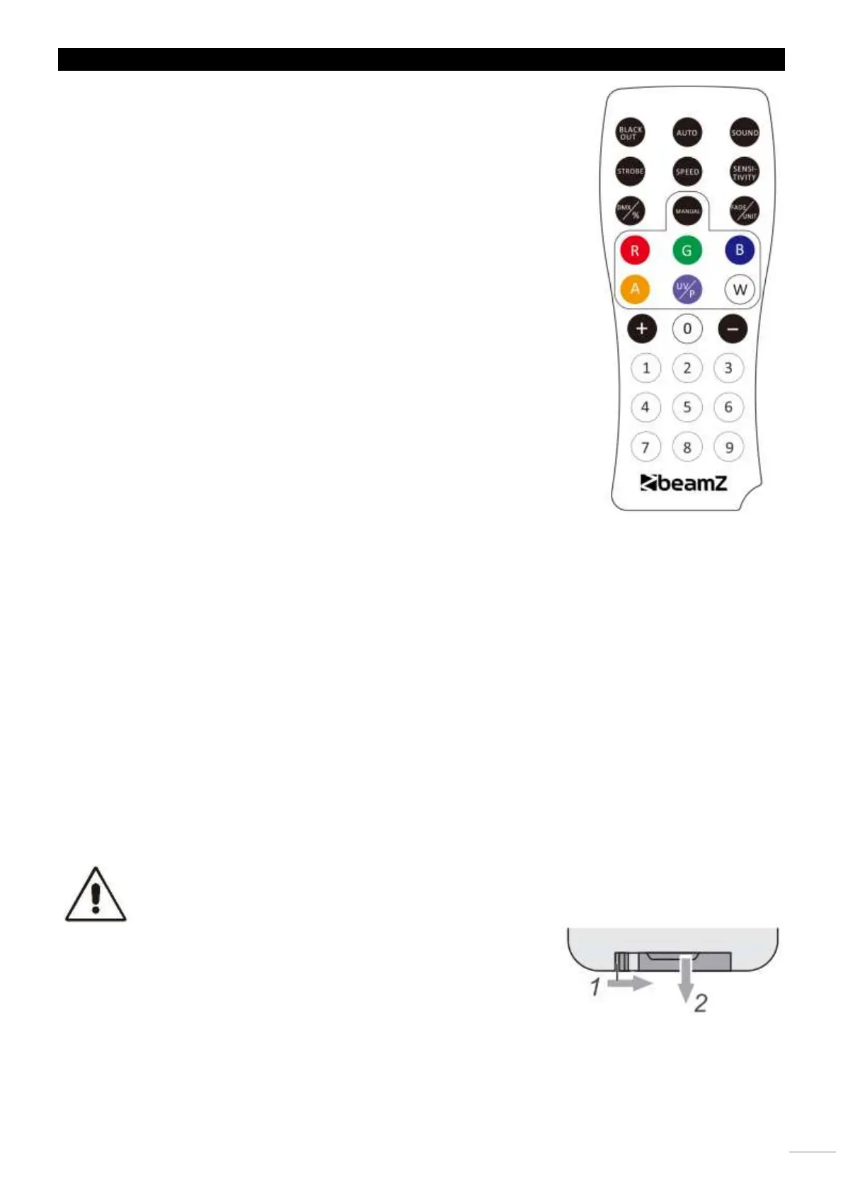 from the battery support on the rear side of the remote control. Otherwise operation of the remote control is not
