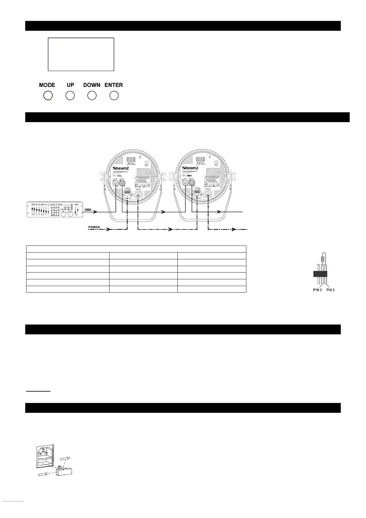 Schließen Sie das erste Gerät "DMX OUT" Busche mit dem zweiten Gerät "DMX IN", durch Verwendung eines 3-Pin DMX