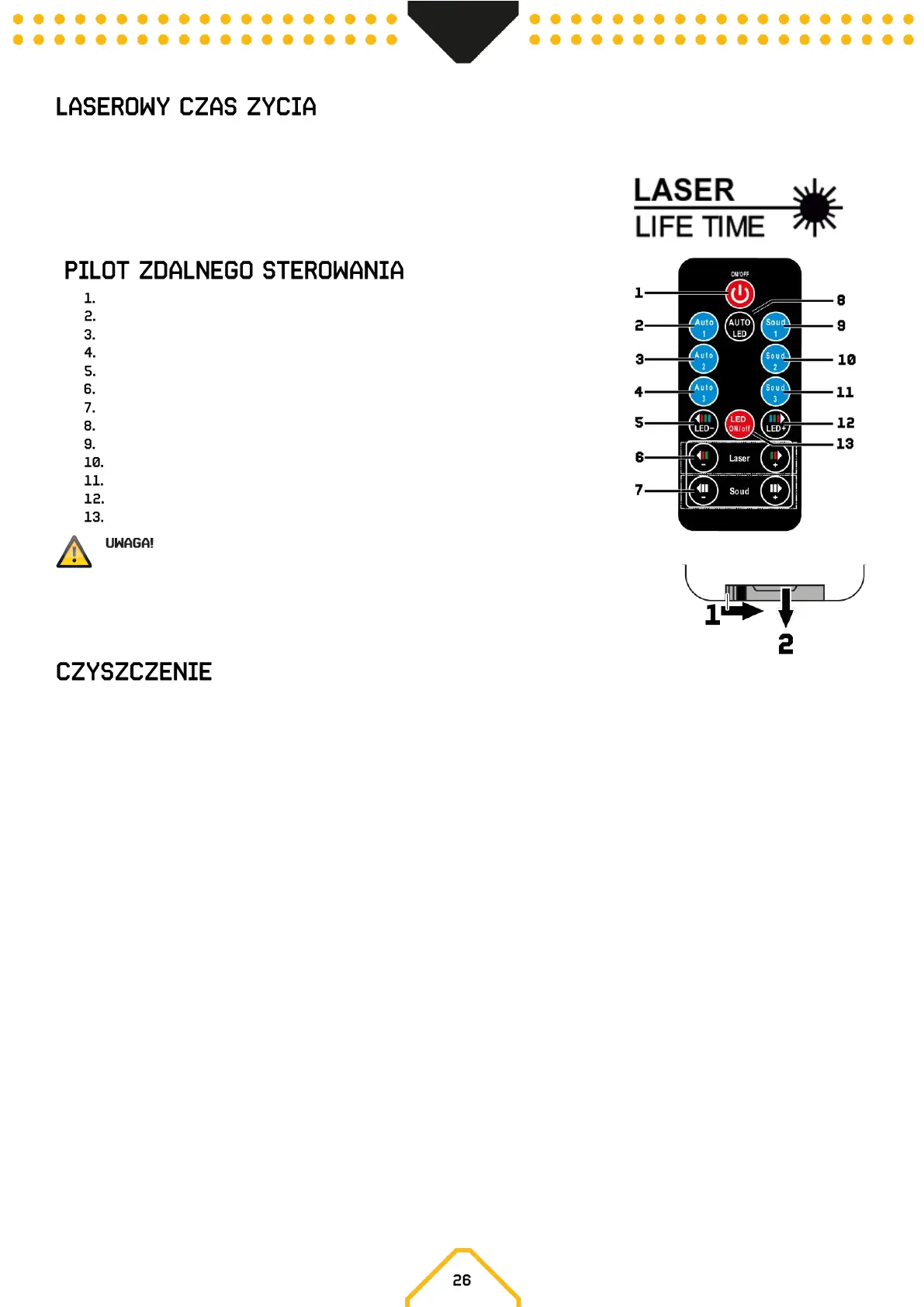 (1) oraz w tym czasie wyciągnij tackę baterii (2). Do używania pilota wymagana jest jedna bateria CR 2025 3V.