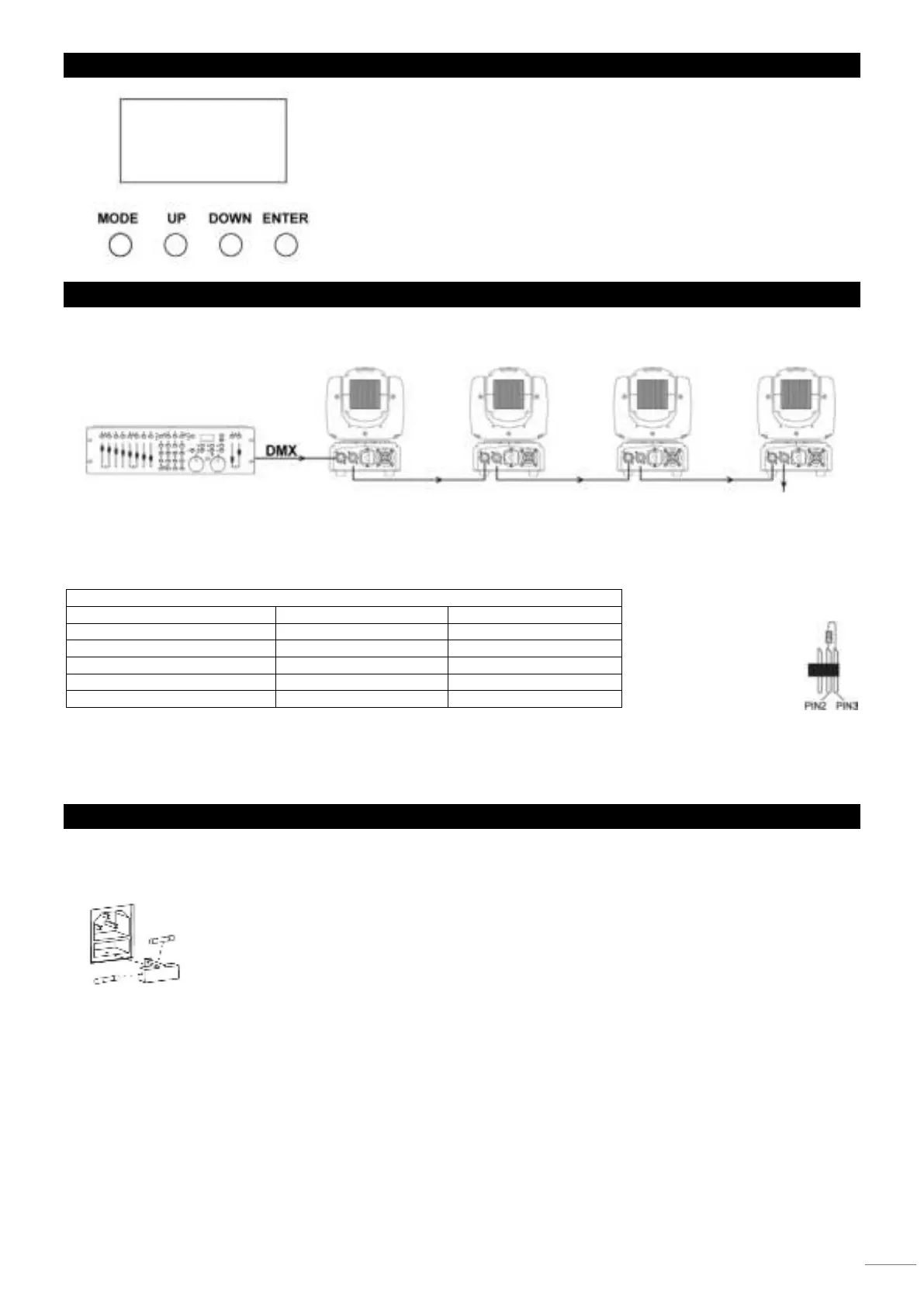 in een 3-polige DMX lijn worden uitgevoerd. Bij het plaatsen van standard 5-polige datakabels in een 3-polige DMX lijn, moet er
