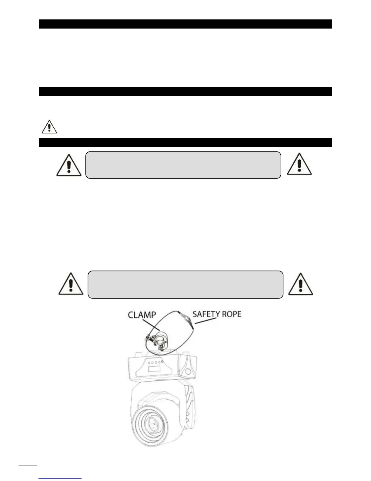 The installation must always be secured with a secondary safety attachment, e.g. an appropriate catch net. This