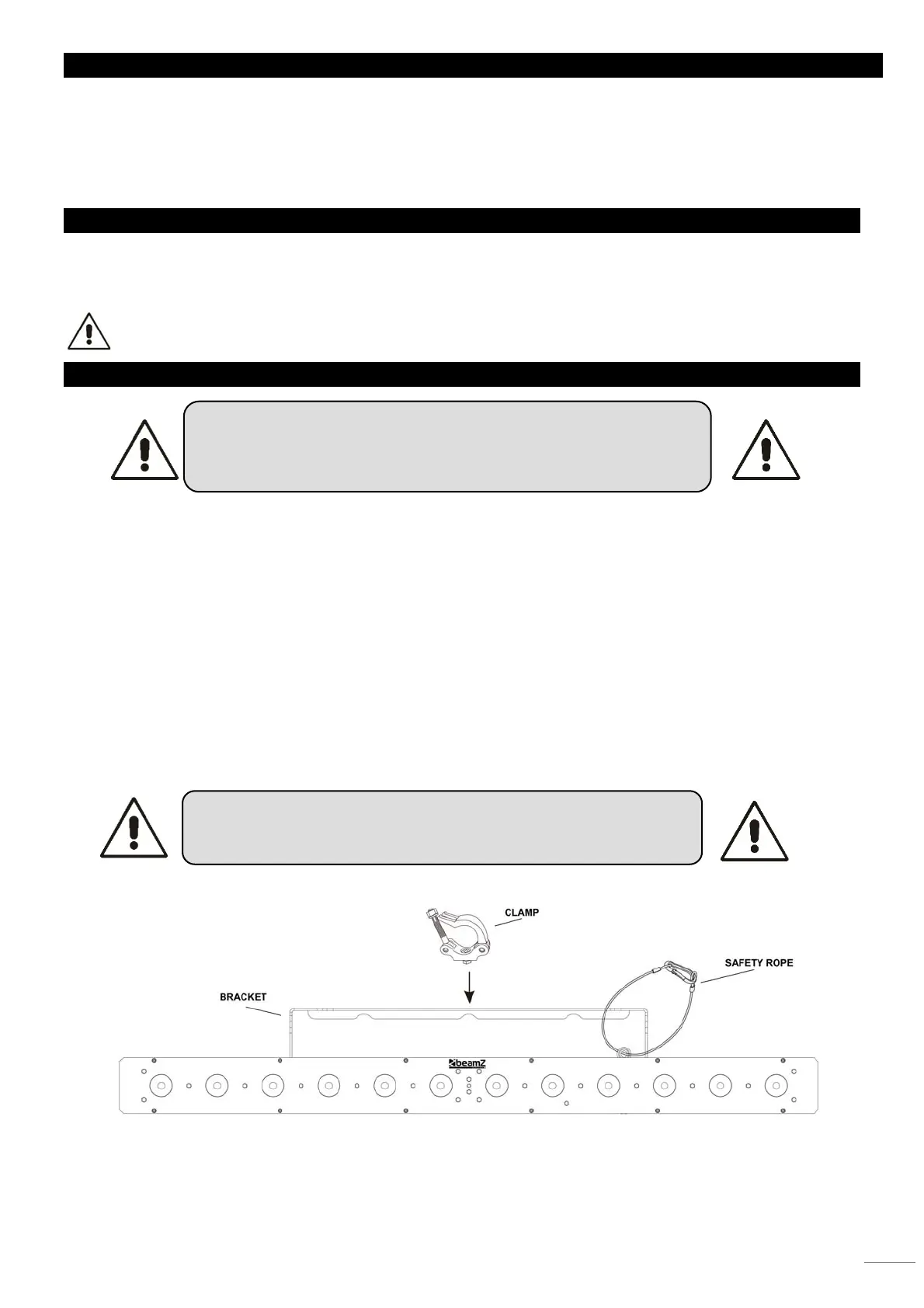 • Die Aufhängung des Geräts muss 10-mal das Eigengewicht 1 Stunde lang ohne Spuren von Verformung tragen