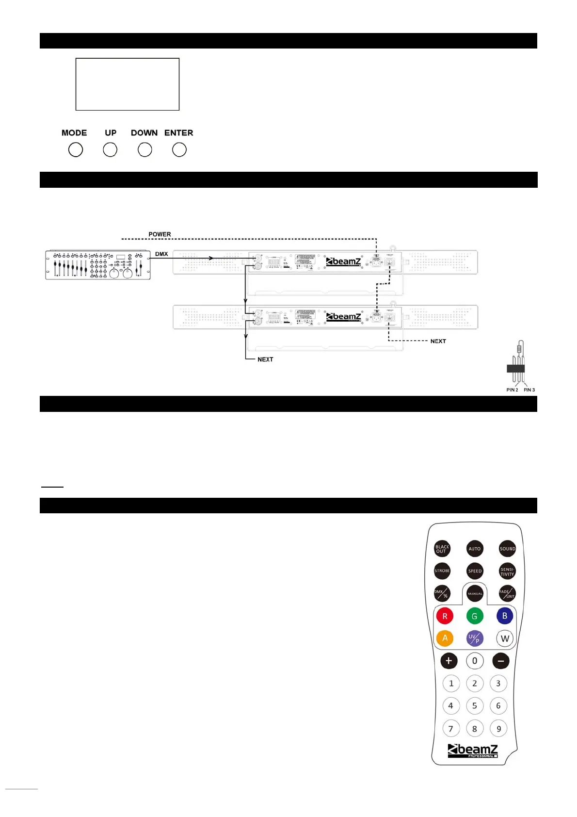 que se conectan todas las unidades. Si utiliza un controlador con conexión DMX 5 pins, deberá utilizar un adaptador de 5 pines