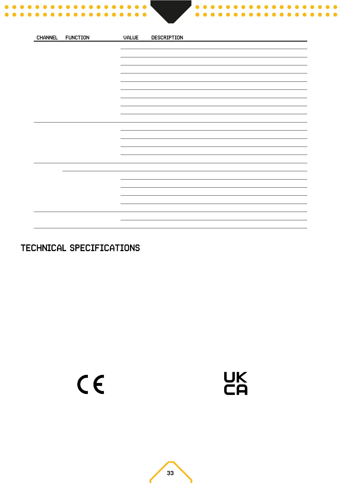 DMX Channels : 3 / 5 / 8 / 24 / 48 / 53