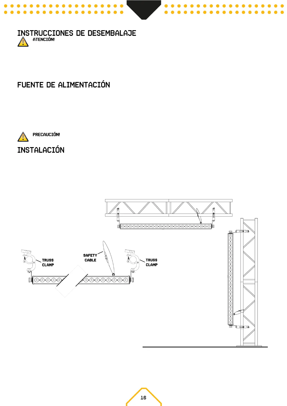 puede montar boca abajo a un truss, vea la imagen de abajo. Para la fijación, se requieren abrazaderas certificadas con la carga de trabajo correcta. El lugar