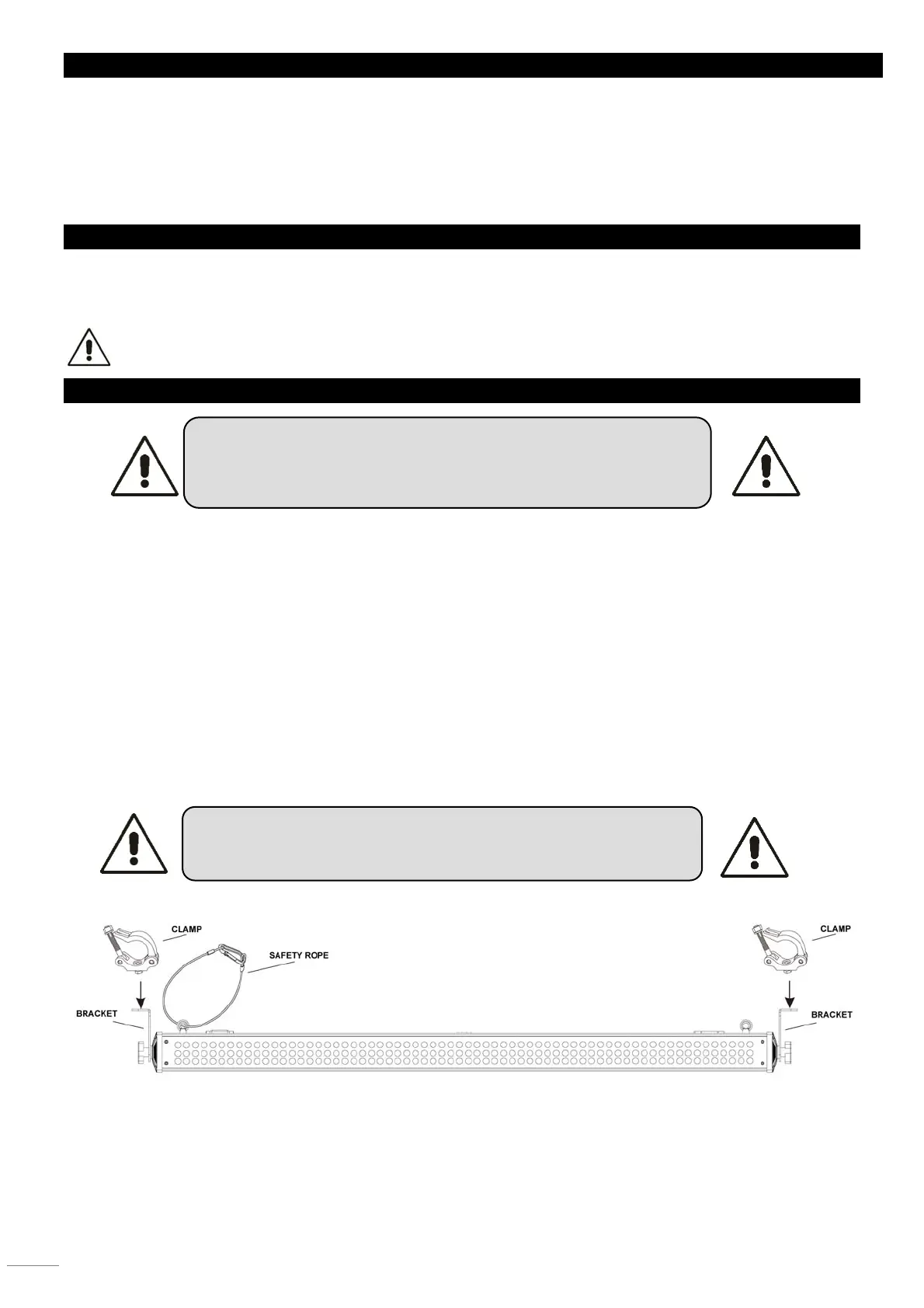 • Die Aufhängung des Geräts muss 10-mal das Eigengewicht 1 Stunde lang ohne Spuren von Verformung tragen