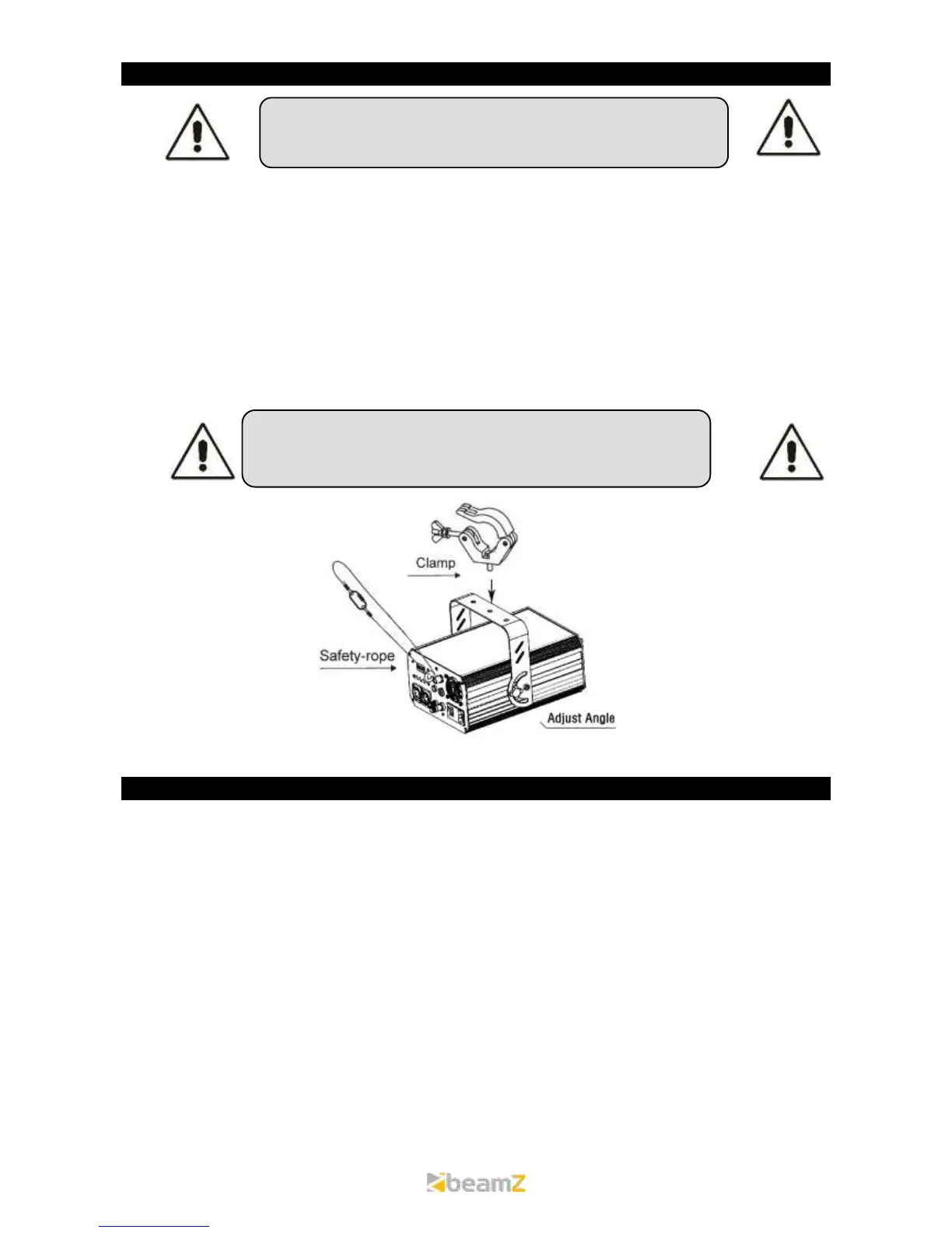 The installation must always be secured with a secondary safety attachment, e.g. an appropriate catch net. This