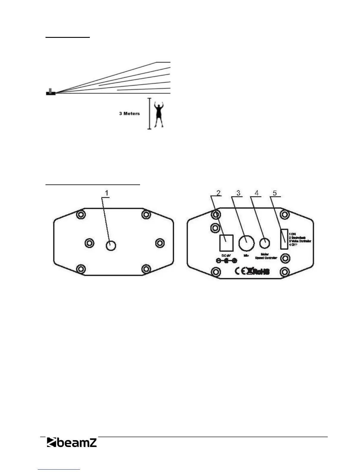 5. COMMUTATEUR DE FONCTION: 2= flash strobo, 1=Marche, 4=Arrêt, 3=Voix de commande