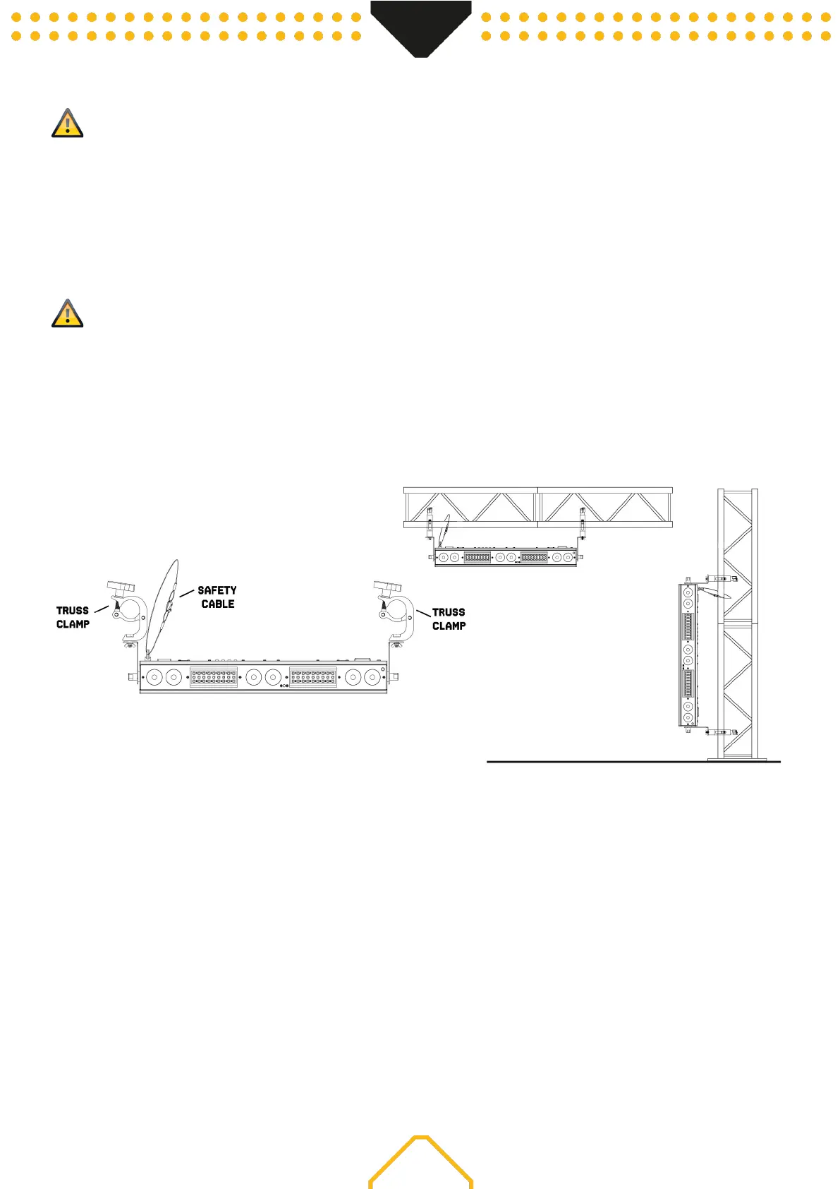 truss, see below picture. For fixing, certified clamps with correct save working load are required. According to the figure, the quick lock bolts of the