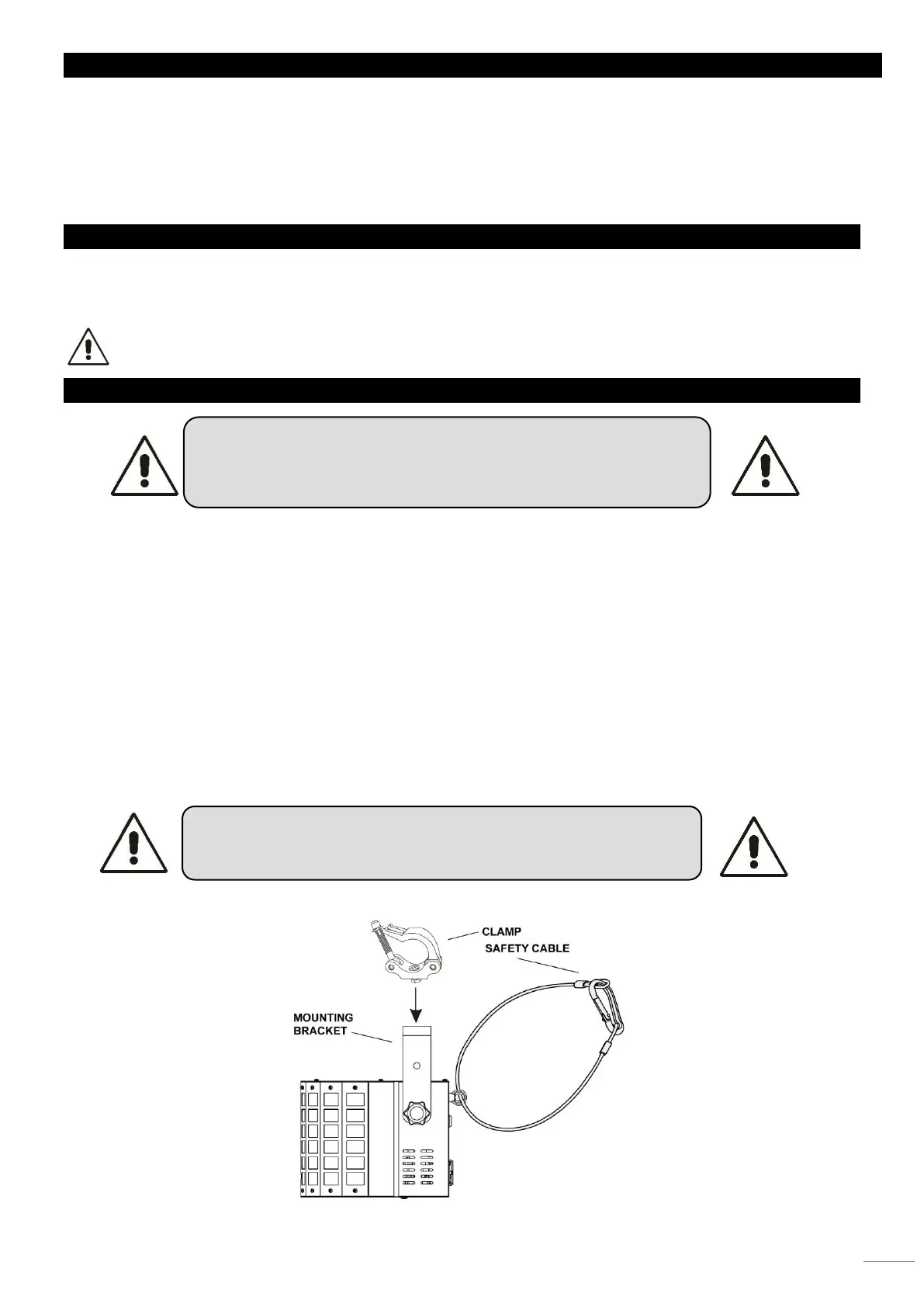 • Das Gerät darf nur über den Montagebügel (nicht enthalten) an der mitgelieferten Hänge-/Befestigungsbügel installiert