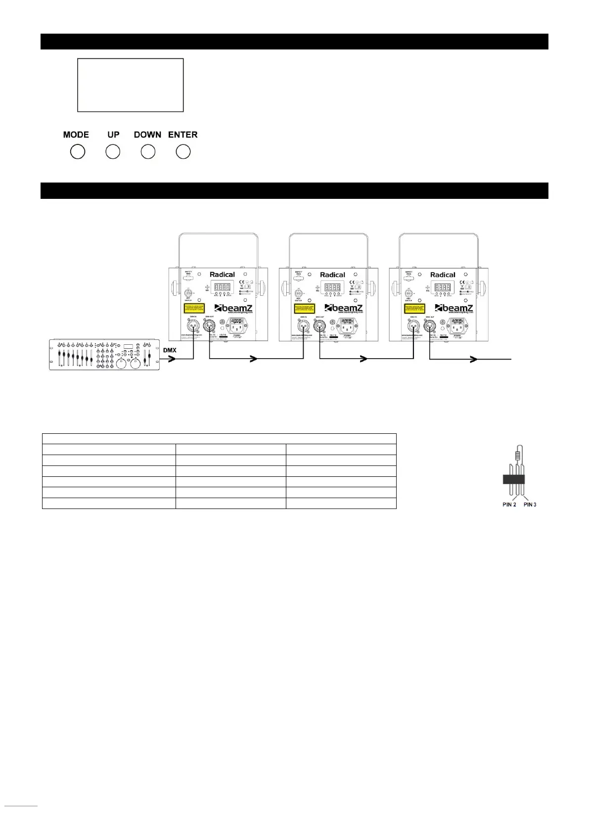 standardowego łańcucha DMX. Trzeba zastosować jednak specjalny adapter. Tabelka poniżej wyjaśnia prawidłową konwersję