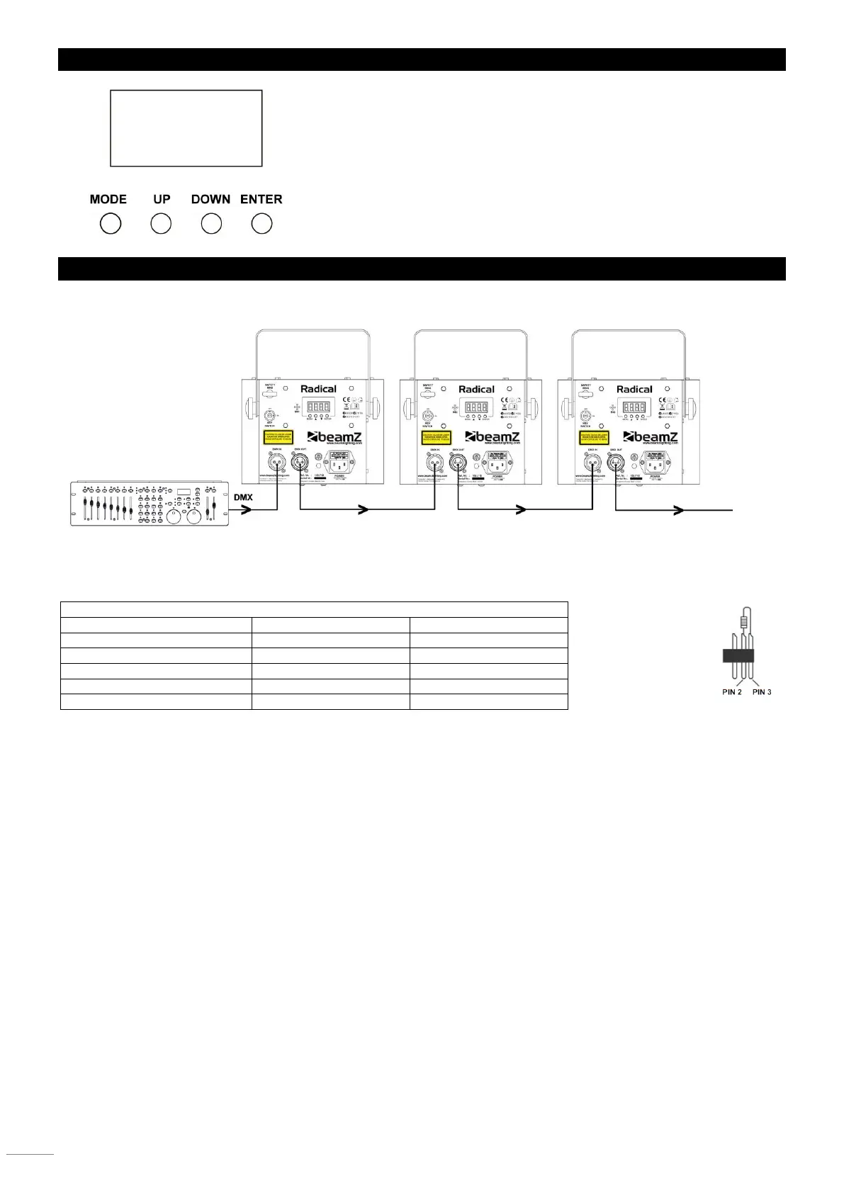 in een 3-polige DMX lijn worden uitgevoerd. Bij het plaatsen van standard 5-polige datakabels in een 3-polige DMX lijn, moet er