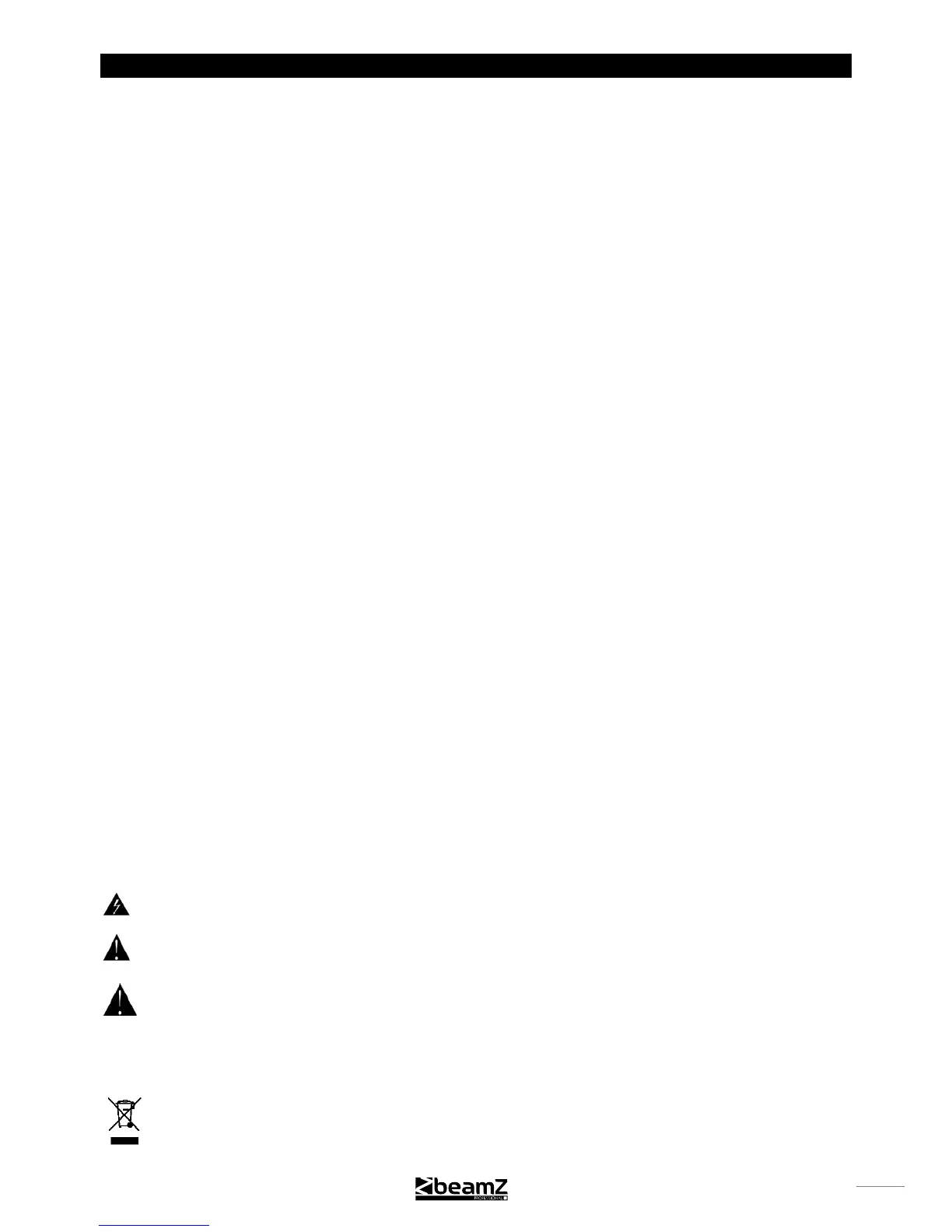 Hartelijk dank voor de aanschaf van dit Beamz apparaat. Neemt U a.u.b. een paar momenten de tijd om deze handleiding