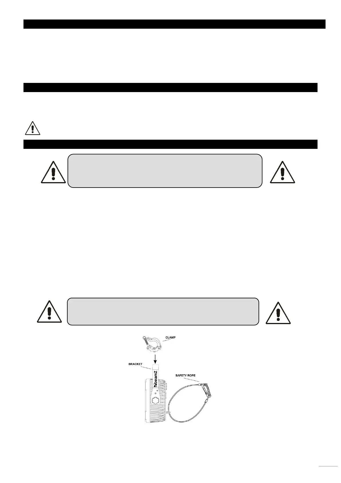 • Die Aufhängung des Geräts muss 10-mal das Eigengewicht 1 Stunde lang ohne Spuren von Verformung tragen