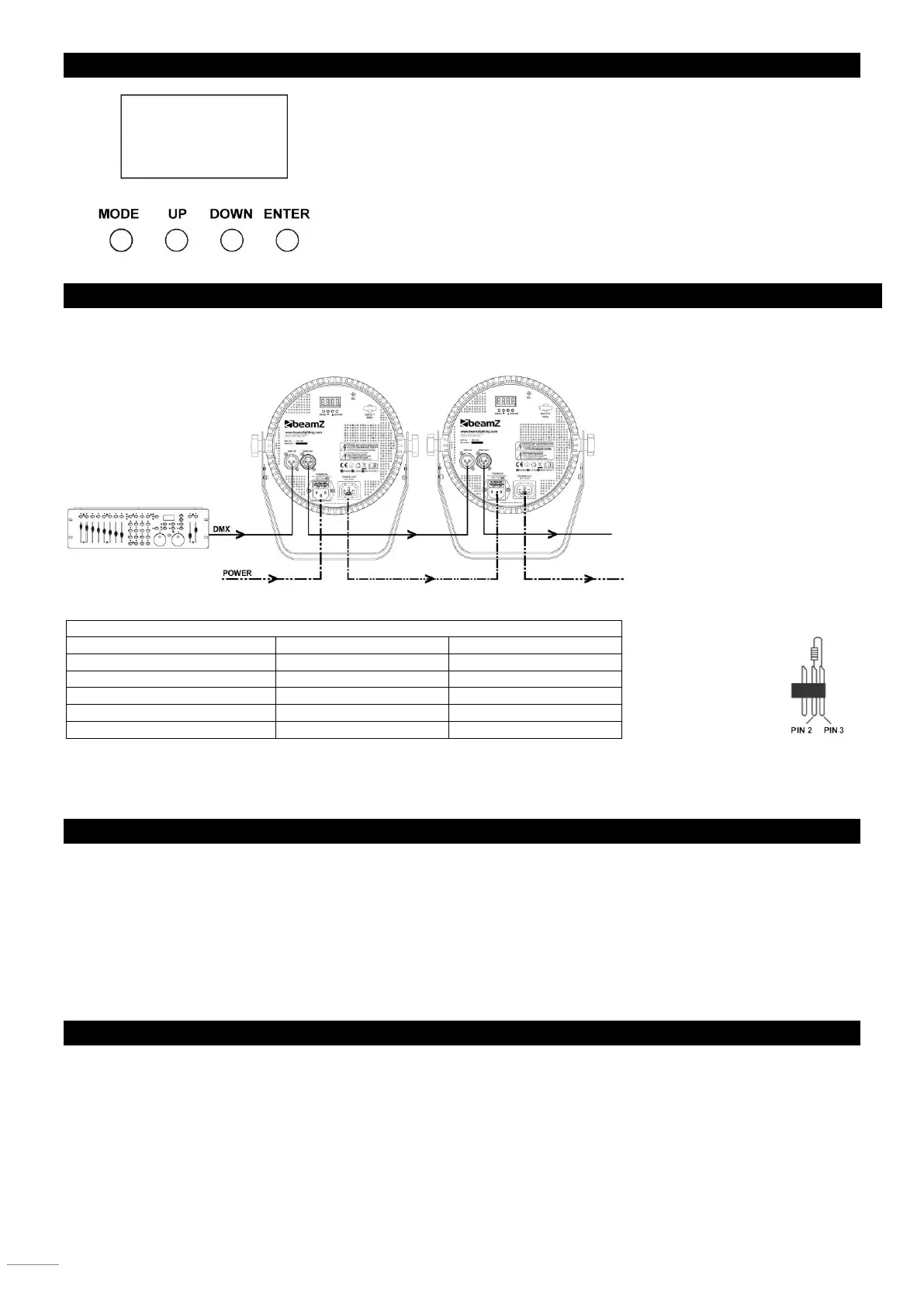 des ersten Gerätes der DMX-Kette verbinden. Verbinden Sie immer einen Ausgang mit dem Eingang des nächsten Gerätes bis