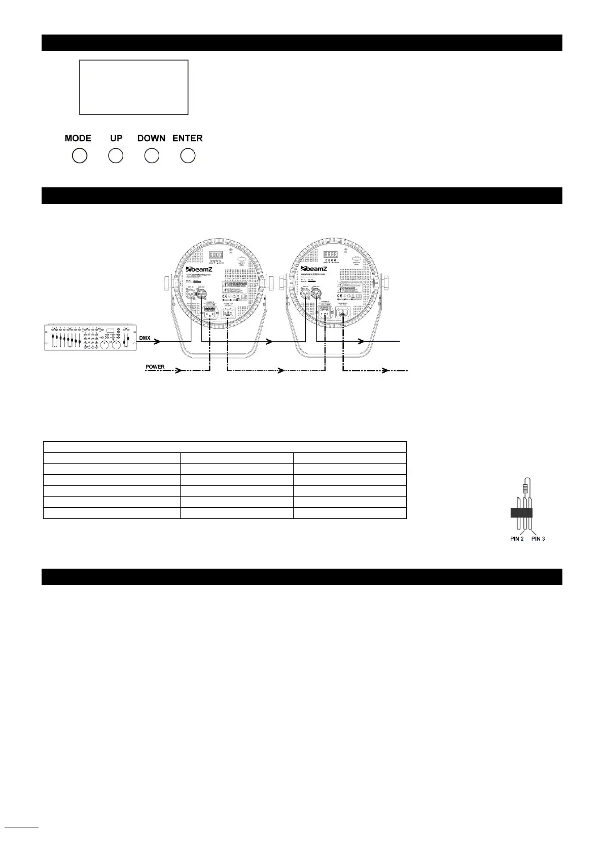 1. Używając odpowiedniego kabla DMX, połącz szeregowo wszystkie urządzenia za pomocą gniazd XLR umieszczonych z tyłu