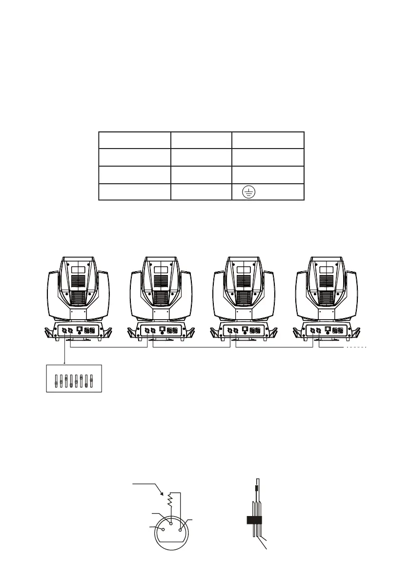You can link the Moving Head 7R to a DMX controller using a 3- or 5-pin DMX cable.