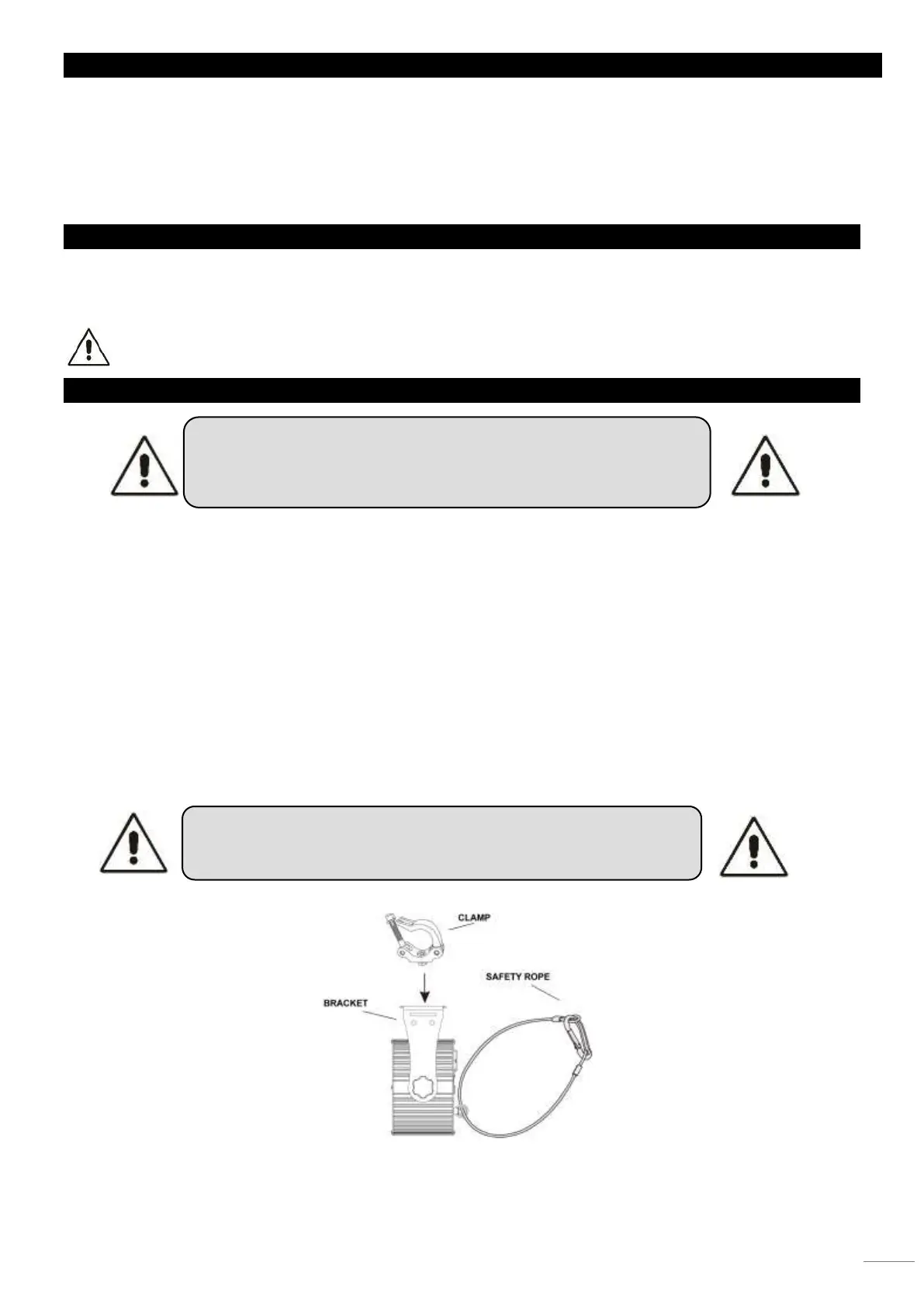 • Die Aufhängung des Geräts muss 10-mal das Eigengewicht 1 Stunde lang ohne Spuren von Verformung tragen
