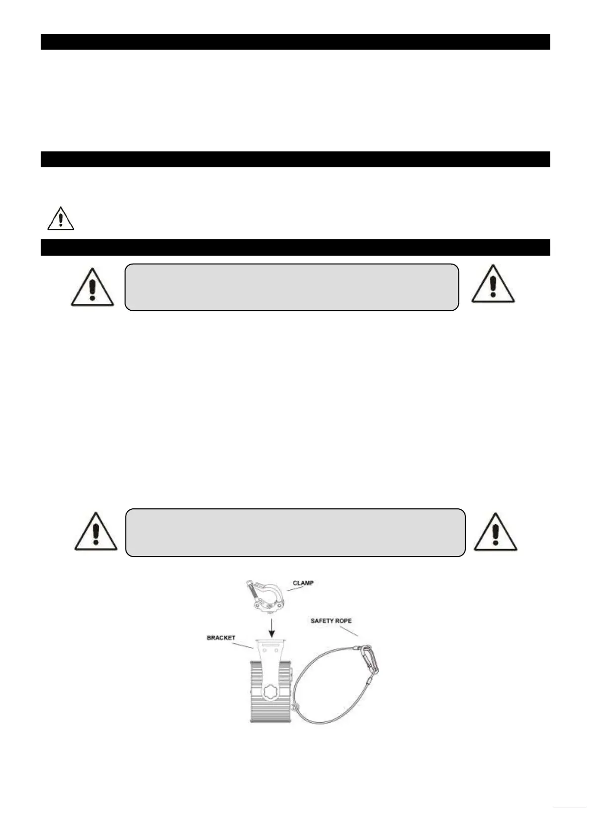 • The installation must always be secured with a secondary safety attachment, e.g. an appropriate catch net.