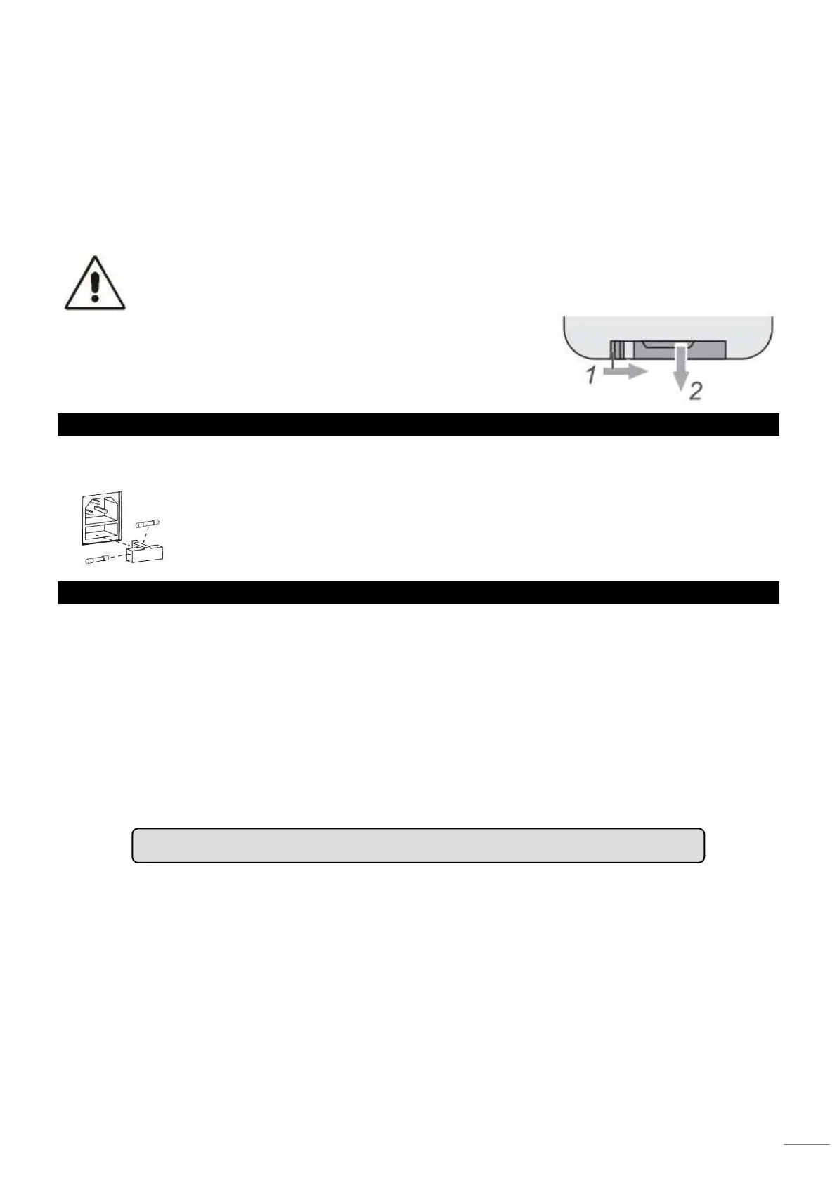 If the fuse is defective, replace the fuse with a fuse of the same type and value. Before replacing the fuse, unplug mains lead.