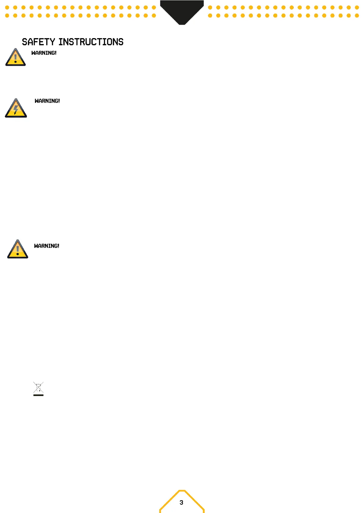 • Always disconnect power from the mains, when unit is not used or before cleaning! Only handle the power cord by the plug. Never pull out