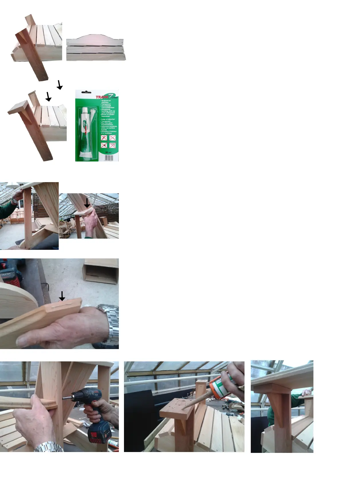 Place the comfort slat (13) and six seat slats(2) on the sides
