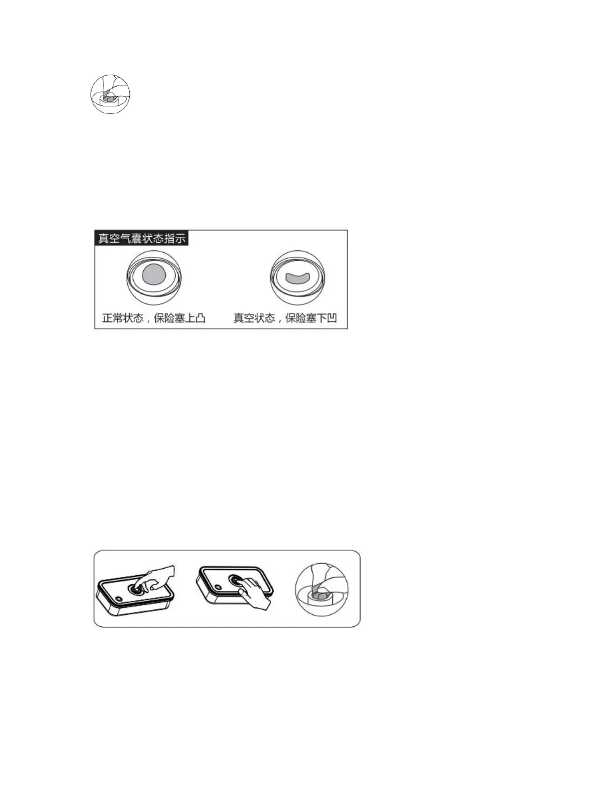 正常状态,保险塞上凸 真空状态,保险塞下