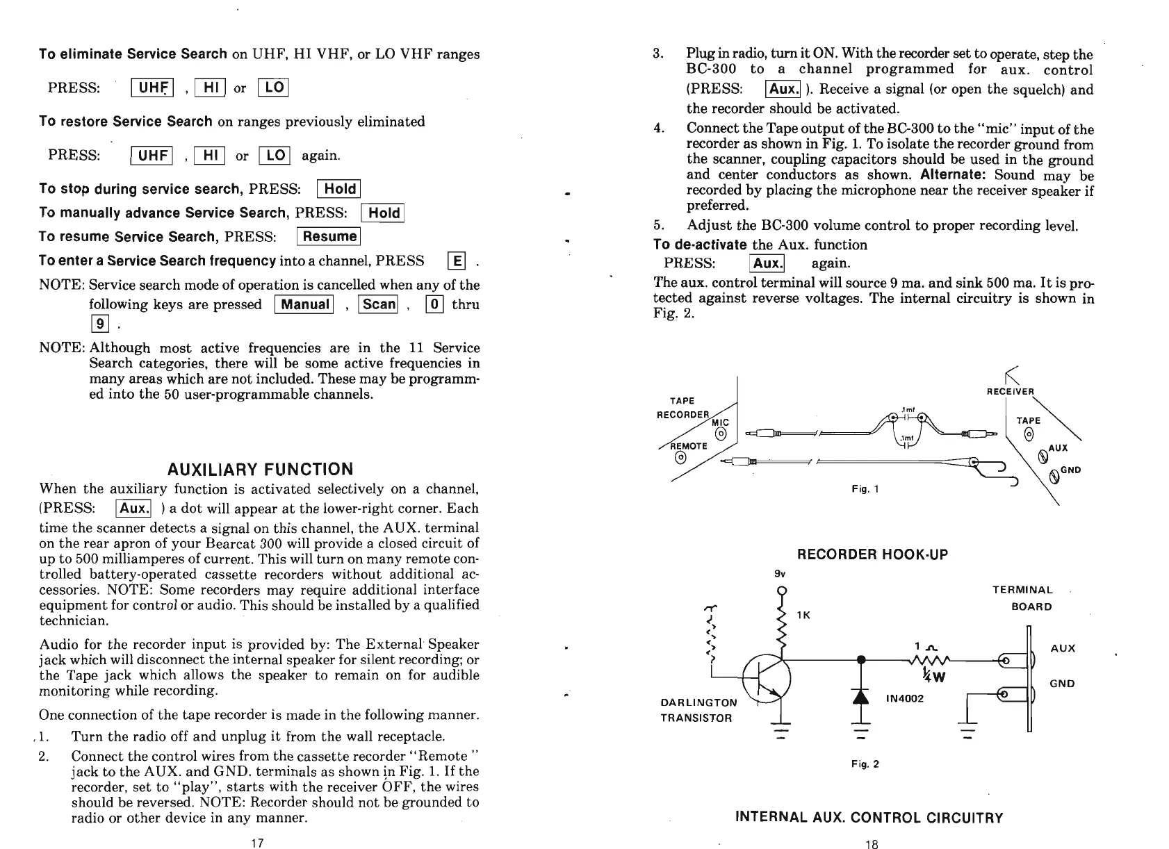 time the scanner detects a signal on this channel, the AUX. terminal