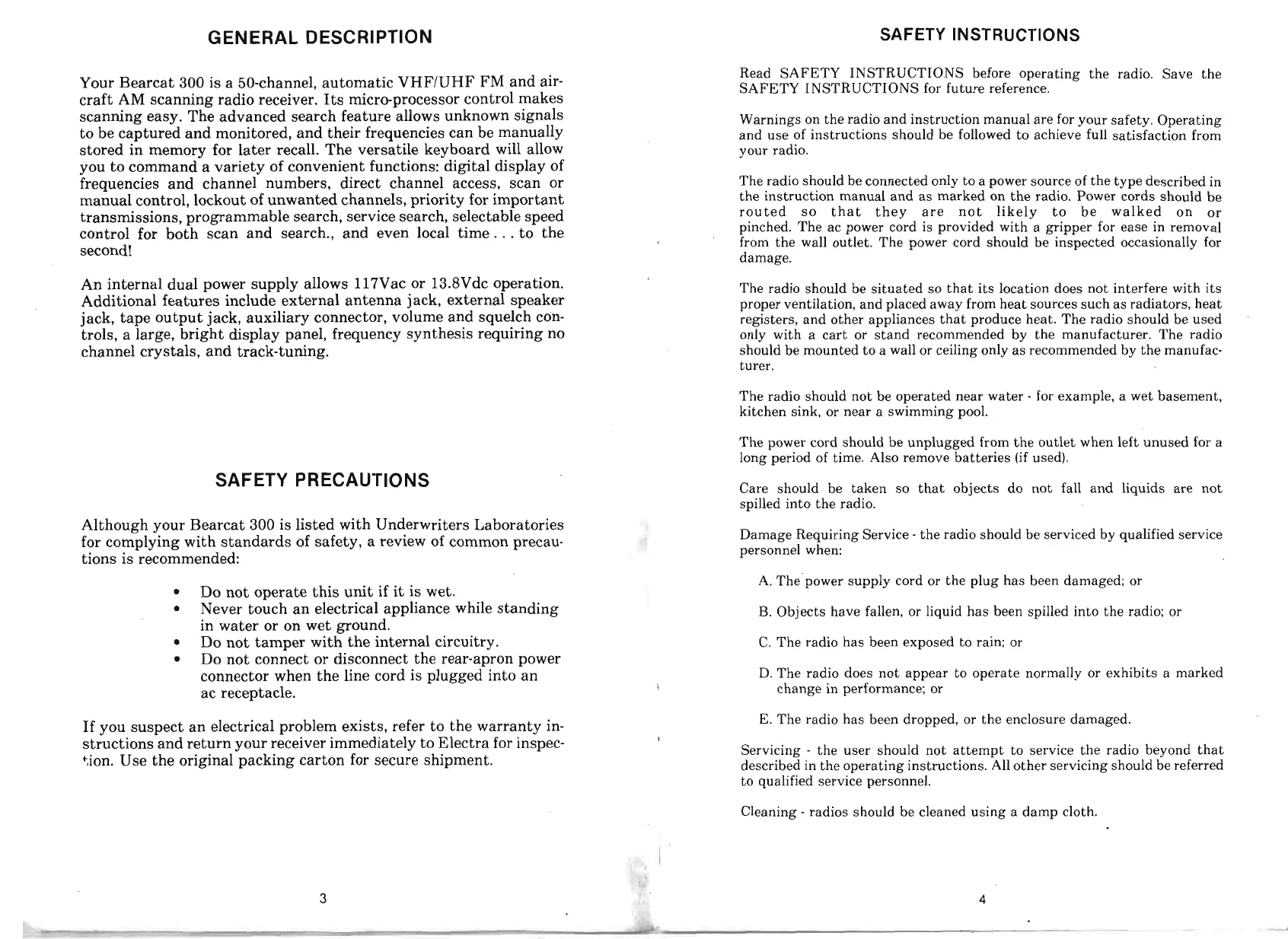 Your Bearcat 300 is a 50-channel, automatic VHFlUHF