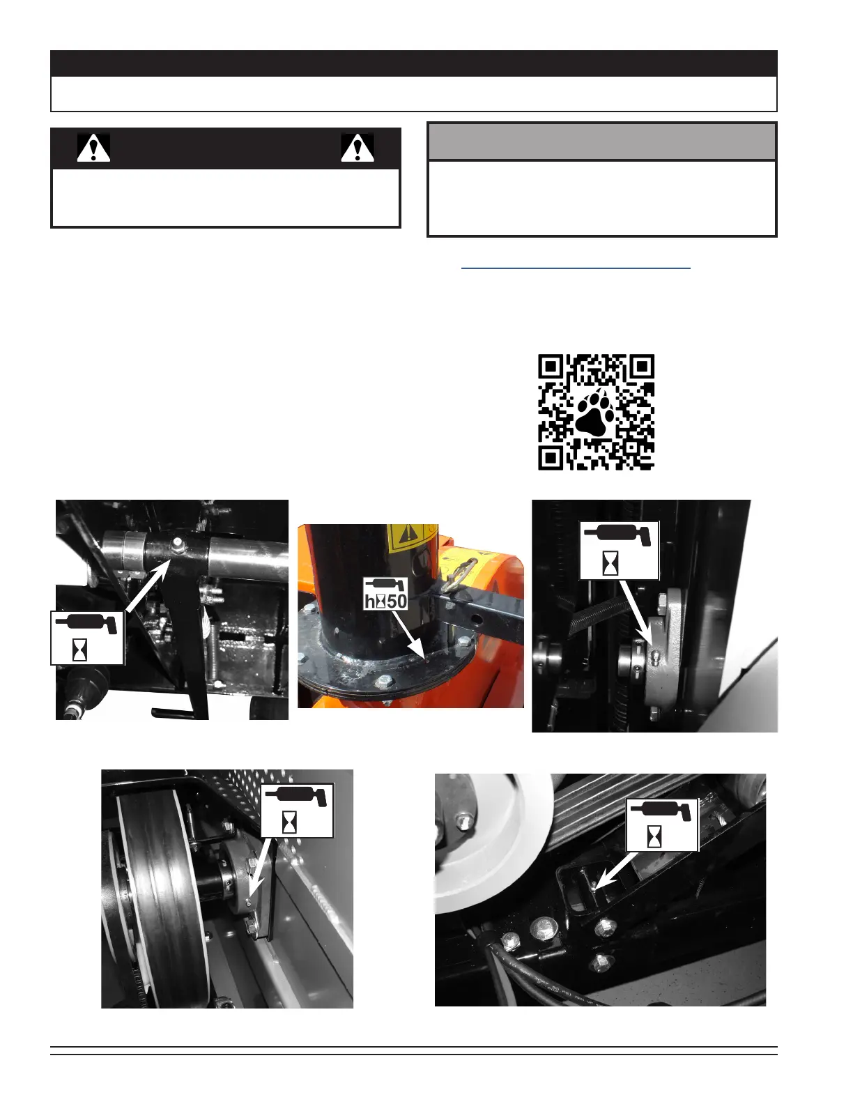 HYDRAULICS, OPEN SHIELD AND MAKE SURE ALL MOVING PARTS HAVE COME TO A COMPLETE STOP.