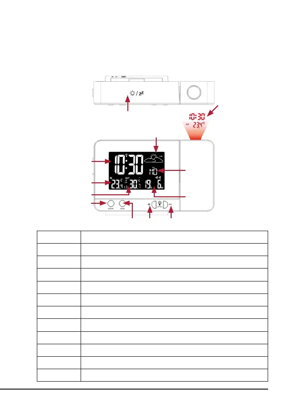 1 „SNOOZE“-Taste (Schlummerfunkon)