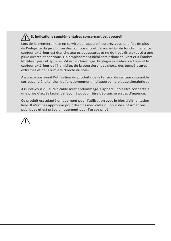 N'ulisez pas cet appareil s’il est endommagé. Protégez la staon de base et le